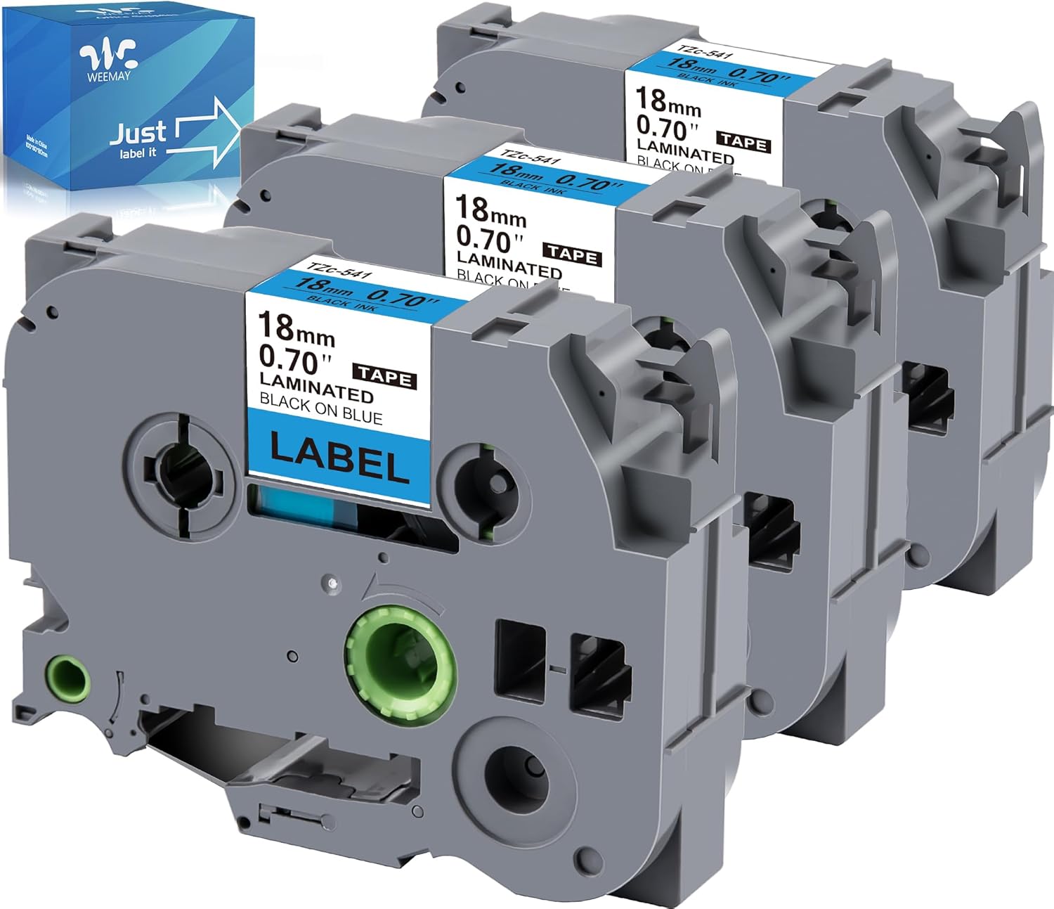 Weemay Compatible 3 Pack TZe-541 Replacement for Brother P-Touch Label Tape 18mm 0.7 Black on Blue 3/4 TZe TZ Tape TZ-541 TZ541 TZe541 for PT-D400AD PT-D610BT PT-D600 PT-D410 Printer, 0.7" x 26.2'
