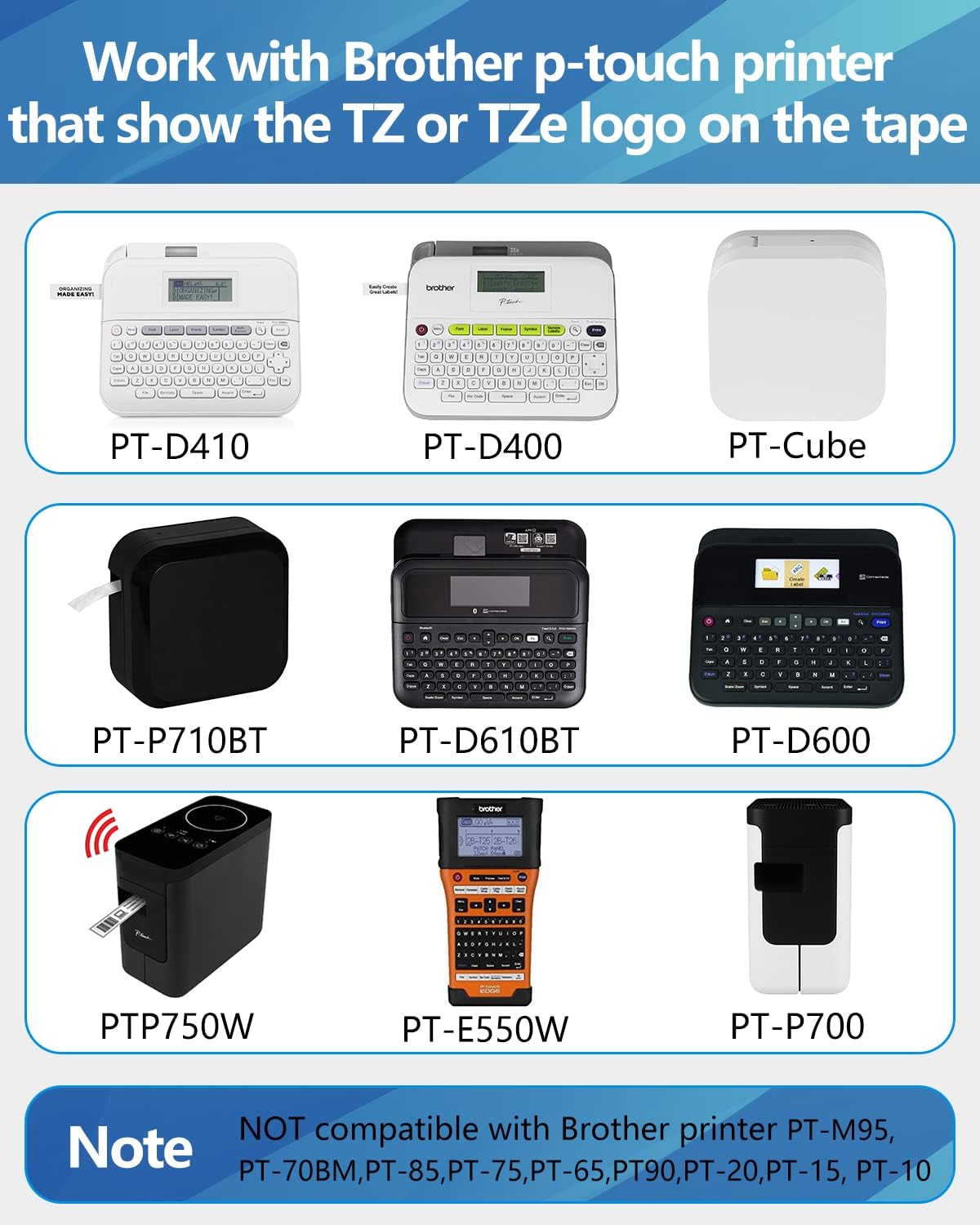 - Compatibility: This TZe-541 label tape is compatible with a wide range of Brother label printer, including the P-Touch Cube, PT-D410, PT-D600, PT-D610BT, PT-E550WVP, PT-D400, PT-P750W, PT-P800W and more
