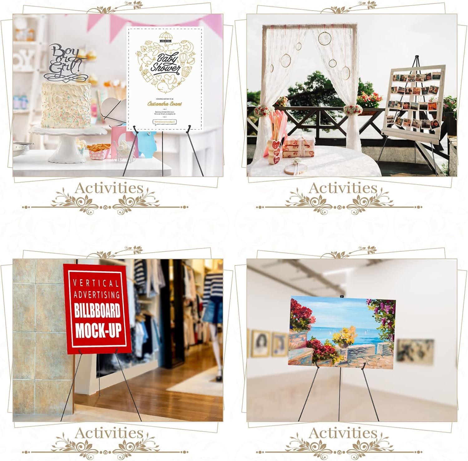 - Extensive Usages: the display stand is decorative yet practical, enjoying a wide range of applications, suitable for displaying art exhibits, canvases, pictures, photo displays, wreaths, school, office presentations, wedding receptions and so on