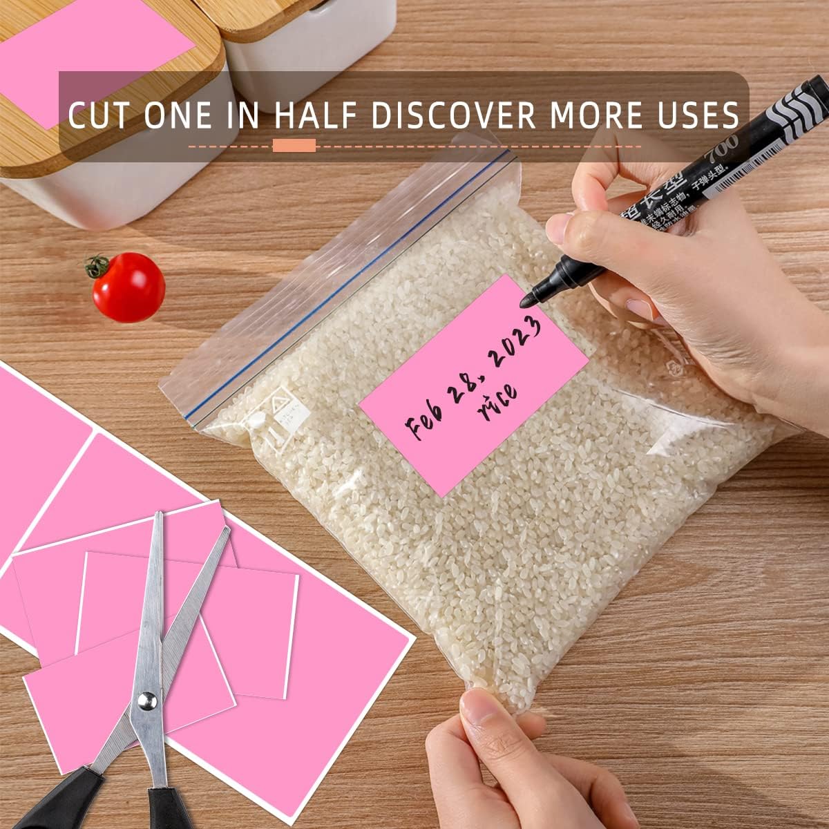 - These Rectangle label stickers adhesive label are easy to use,tear off the dotted line of the color box and pull the circle stickers from box, what you want is just write it with a felt tip marker, peel it and then stick it!
