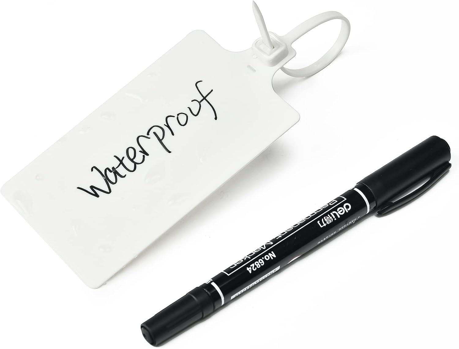 50 White Plastic Writable Shipping Tags - Large, Waterproof, Hanging Labels with One Permanent Marker Pen