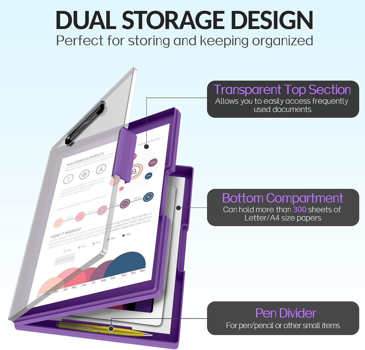 Sooez Clipboard with Storage, Heavy Duty Cleaview Clip Boards 8.5x11 with Dual Storage, Dry Erase Plastic Nursing Clipboard, High Capacity Clipboards Folder for Teacher Nurse, School & Office Supplies