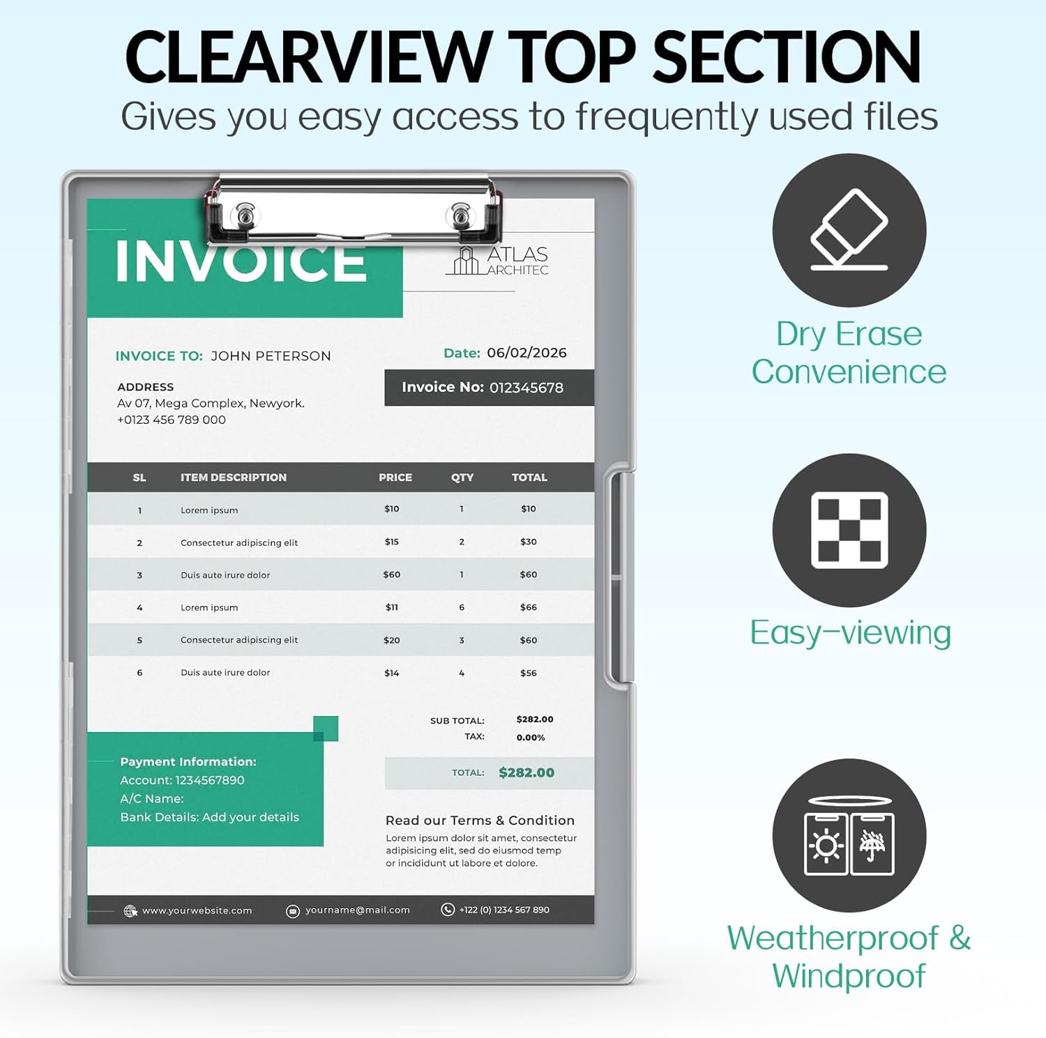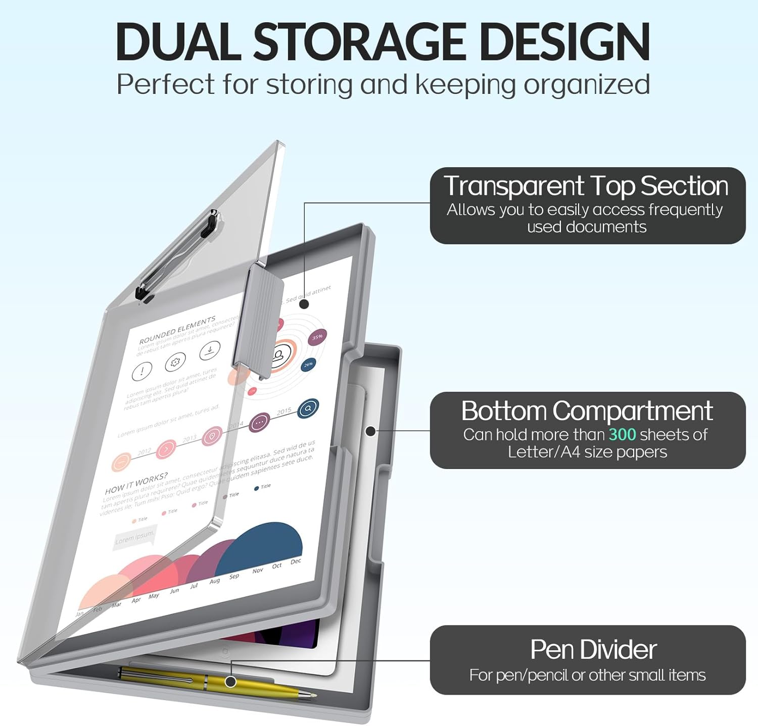 Sooez Clipboard with Storage, Heavy Duty Cleaview Clip Boards 8.5x11 with Dual Storage, Dry Erase Plastic Nursing Clipboard, High Capacity Clipboards Folder for Teacher Nurse, School & Office Supplies
