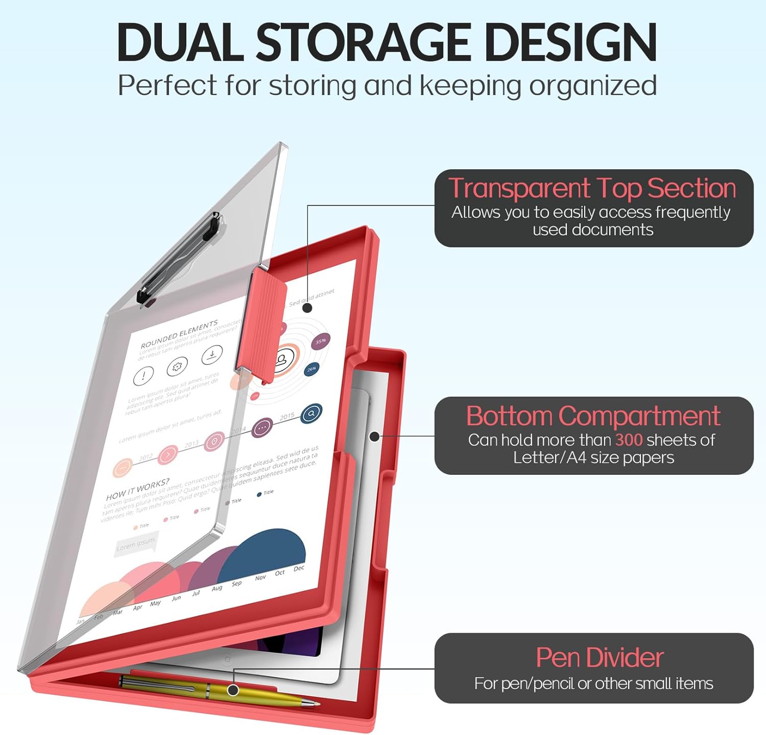 Sooez Clipboard with Storage, Heavy Duty Cleaview Clip Boards 8.5x11 with Dual Storage, Dry Erase Plastic Nursing Clipboard, High Capacity Clipboards Folder for Teacher Nurse, School & Office Supplies
