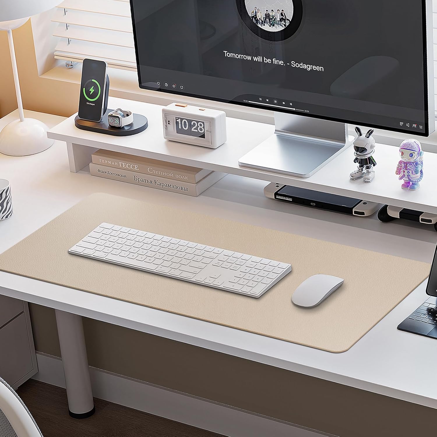 Boutilon Leather Desk Pad Protector,Non-Slip Mouse Pad,Laptop Desk Pad,Office Mouse Mat,Waterproof Leather Desk Blotter,Desk Writing Pad for Office and Home (L-Beige,35"x 17")