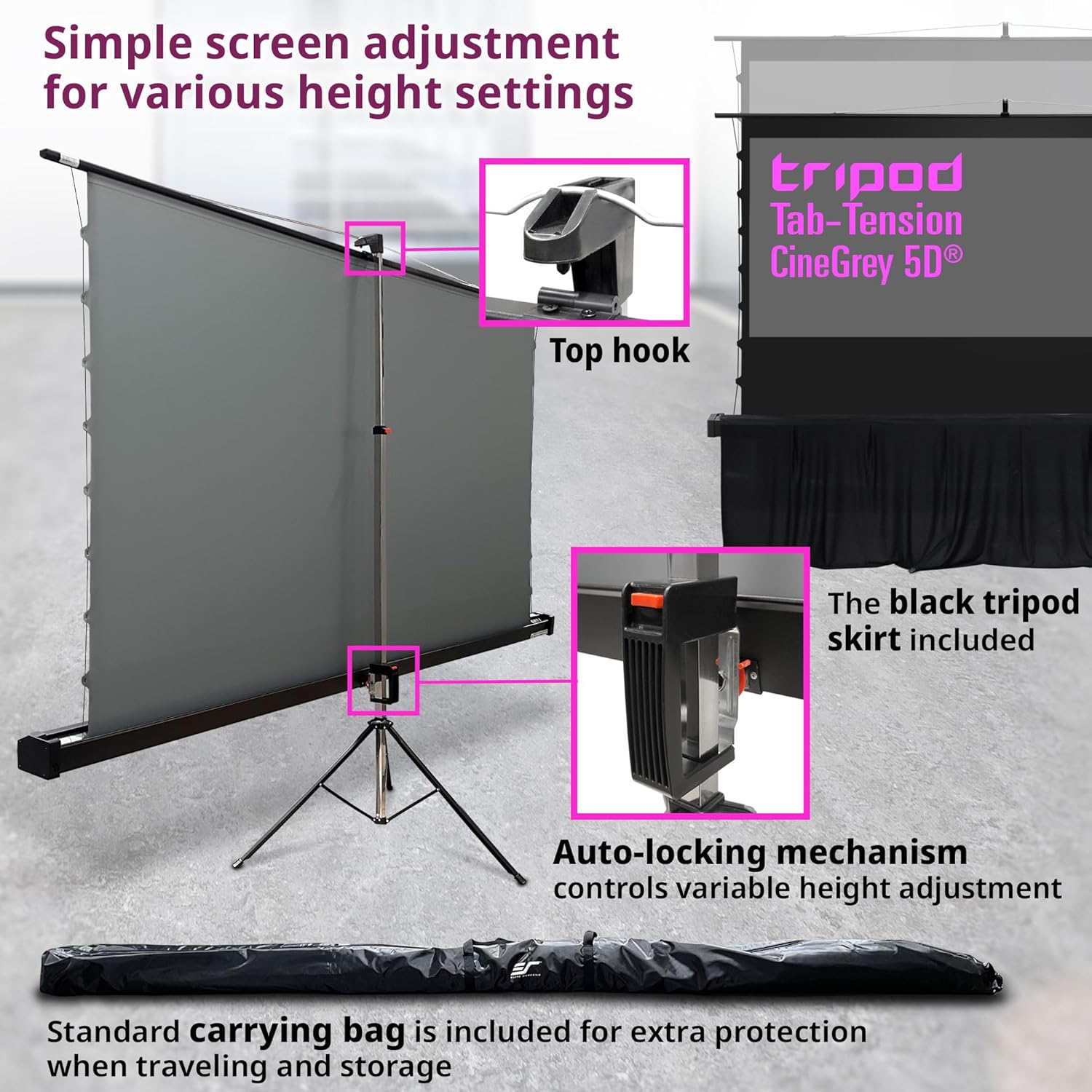 Elite Screens Tripod Tab-Tension CineGrey 5D, 103-inch Diag. 16:9, ISF Material Ceiling Ambient Light Rejecting ALR/CLR Tripod Pull-Up Portable Projector Screen, 8K 4K Ultra HD 3D Ready, TT103UHD5