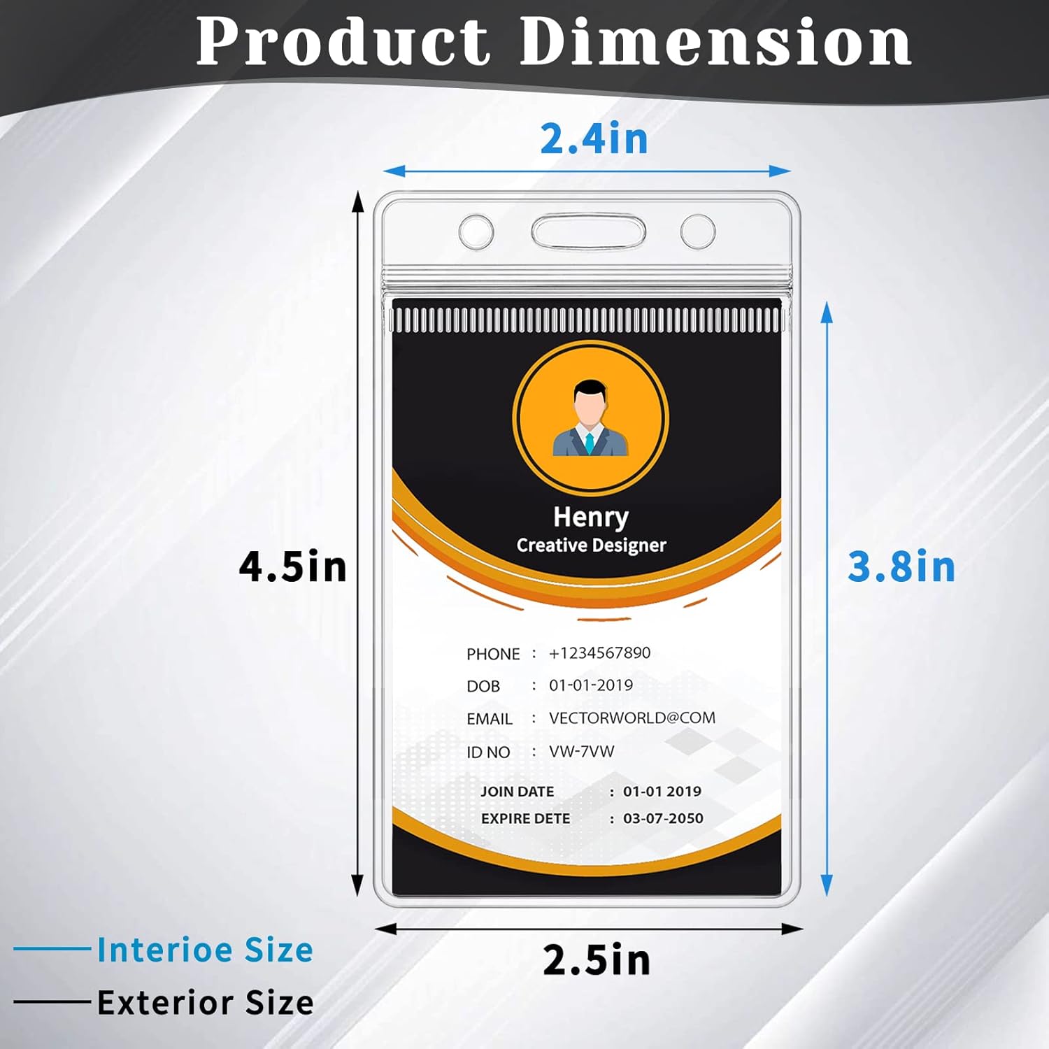 - Waterproof and Dust-proof - The name tag holder features a resealable zipper closure for easy opening and closing. Good sealing can effectively prevent water or dust from entering, keeping cards dry, clean and long-lasting. You can safely put your ID card, work card or credit card in it.