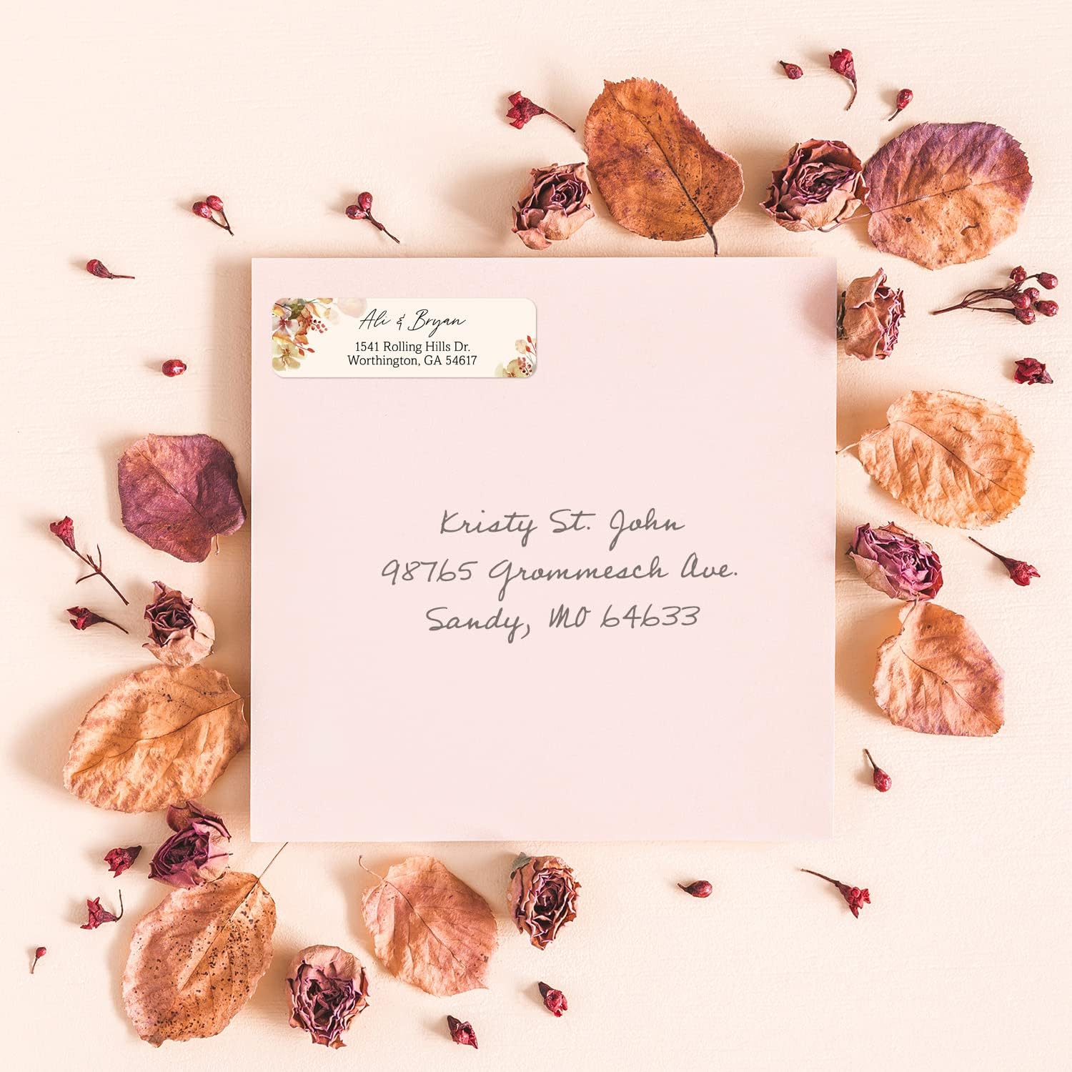 - Perfect Size: These classic address label designs measure approximately 2½" x ¾". Colorful and rustic burnt orange floral illustration accompanied by trendy font choices brings charm to this timeless address label. Large, caligraphy name complemented by clean, legible address font.