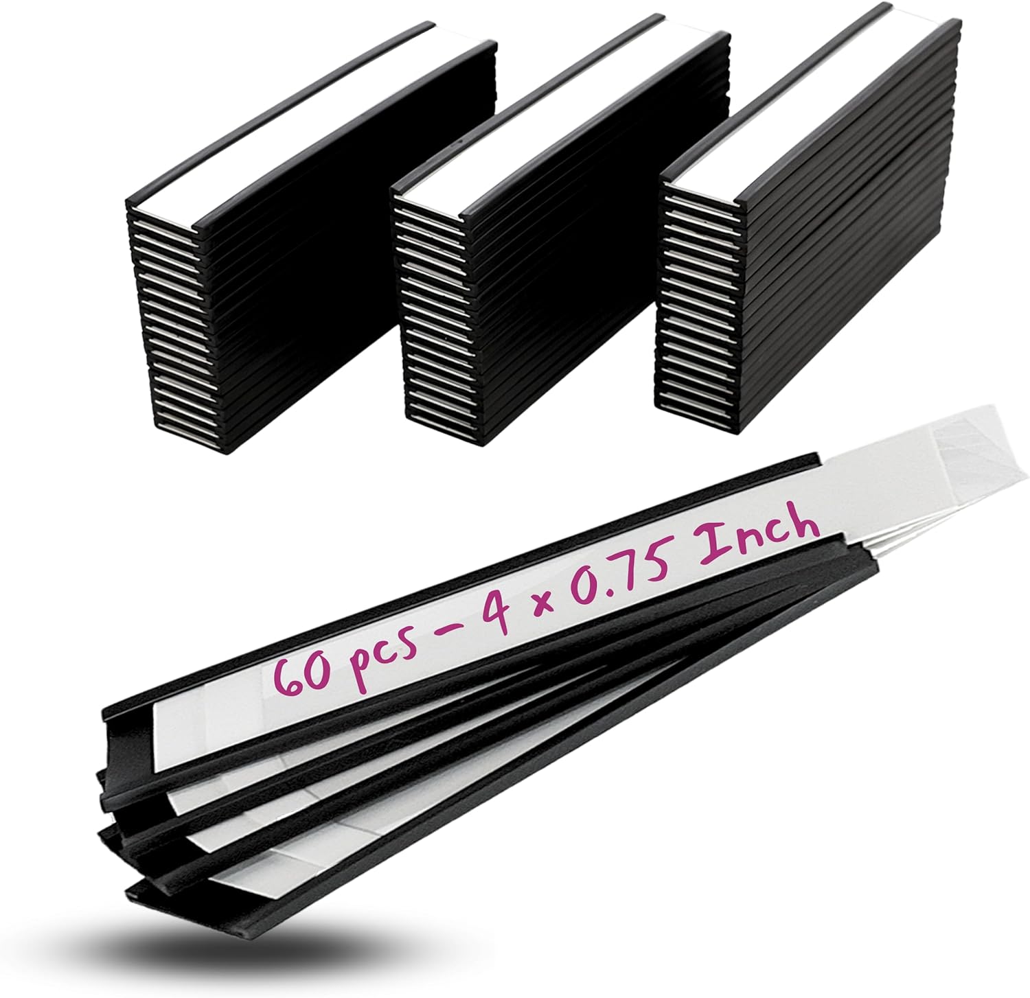 - Application: Present important information to customers, colleagues, and friends in a clear and eye-catching way! This magnet labels for steel shelves set comes in 60 pcs - 4x0.75 inches, providing your business with a choice to best work with your décor;