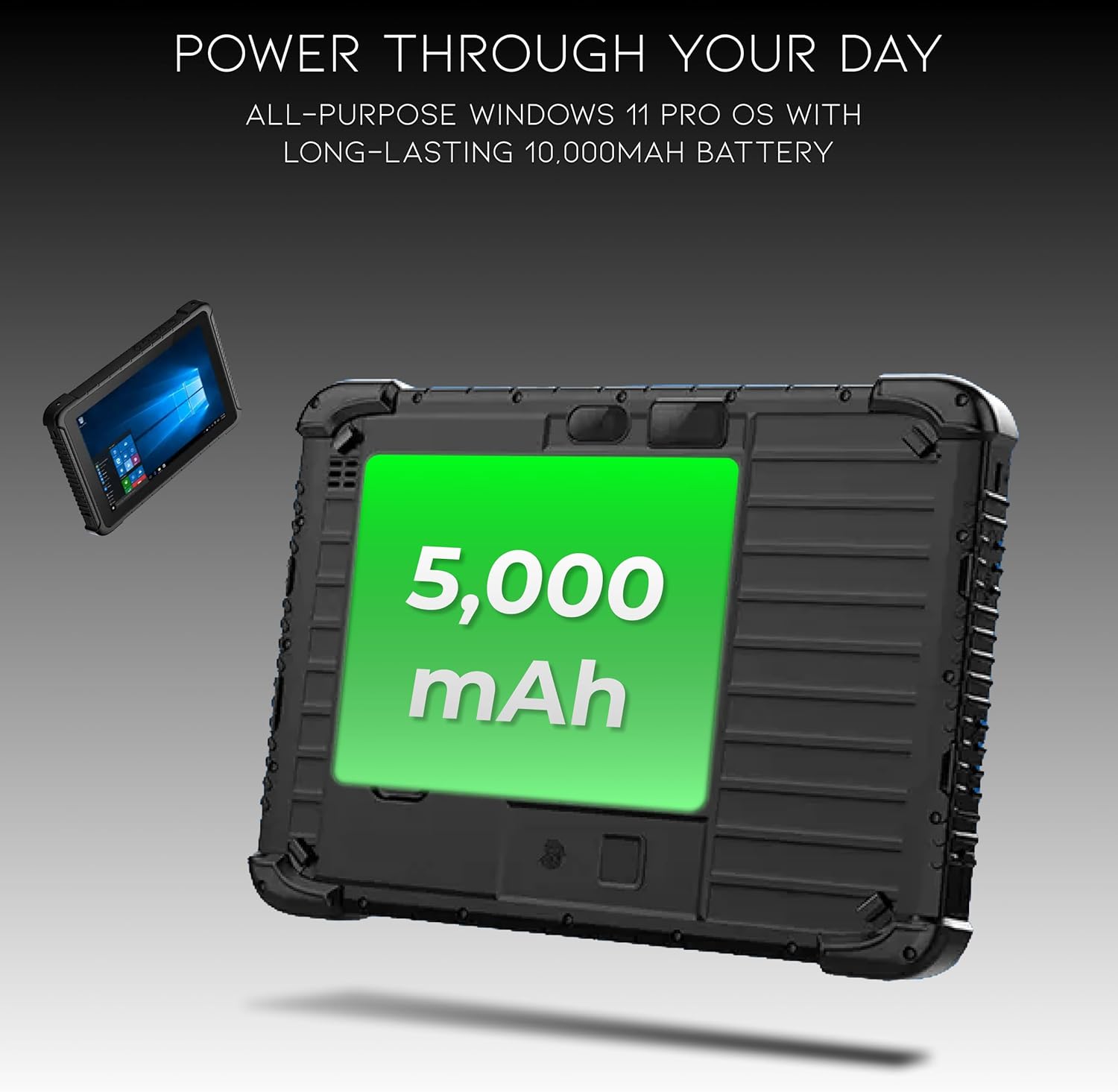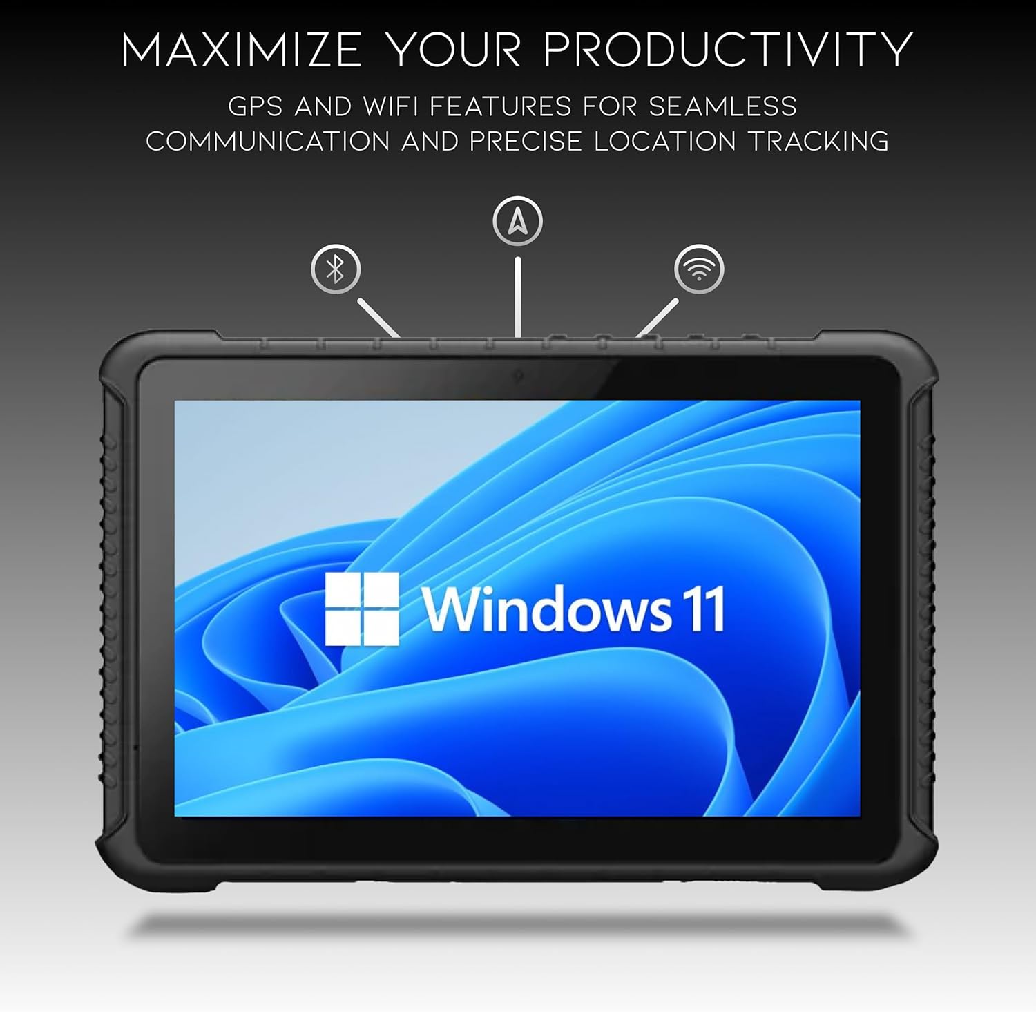 VRT11 Heavy Duty Windows 11 Pro Tablet, Built-in 2D/1D/QR Barcode Scanner, WiFi, Bluetooth, Camera, Serial/USB Ports, Fingerprint Reader, Indoor/Outdoor Industrial Design, All-Day Battery