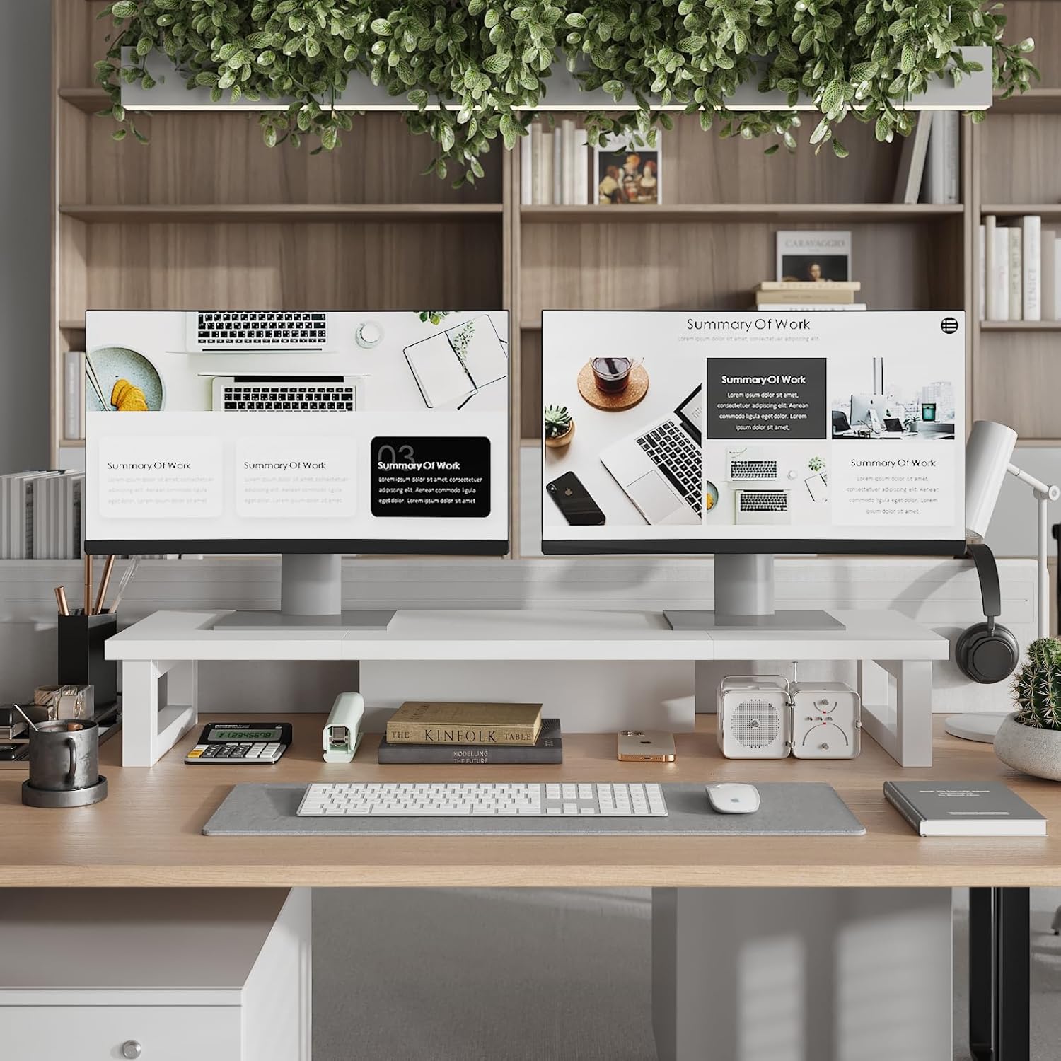 WESTREE Dual Monitor Stand Riser, Wood and Steel Monitor Stand Riser, Computer Monitor Stand for 2 Monitors, Multi-Purpose Desktop Storage Stand for Computer,Laptop,Printer,TV