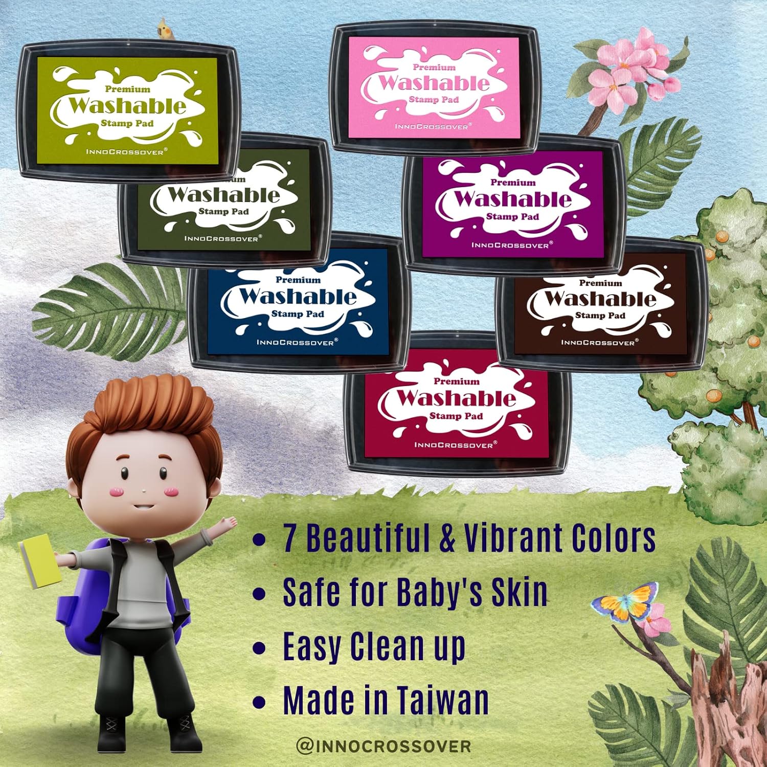7 Washable Ink Pad, Stamps for Kids, Kids Crafts, Paw Print Kit, Baby Footprint Kit, Stamp Pads for Baby Shower on Scrapbooking, Fingerprint Ink Pad, Easy to Wash Off Skin| Large | Safe Non-Toxic