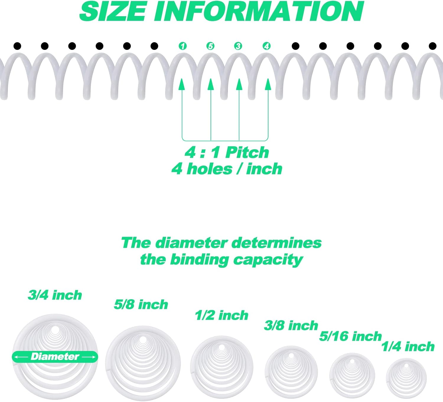 - 4:1 Pitch: spiral binding spines fit letter size paper (8.5 x 11.0 inches), the binding spirals have a 4:1 pitch, will fit any binding machine that punches 4 holes per inch; Helping you combine your report pages, calendars, documents and more, providing much convenience to your daily work or study