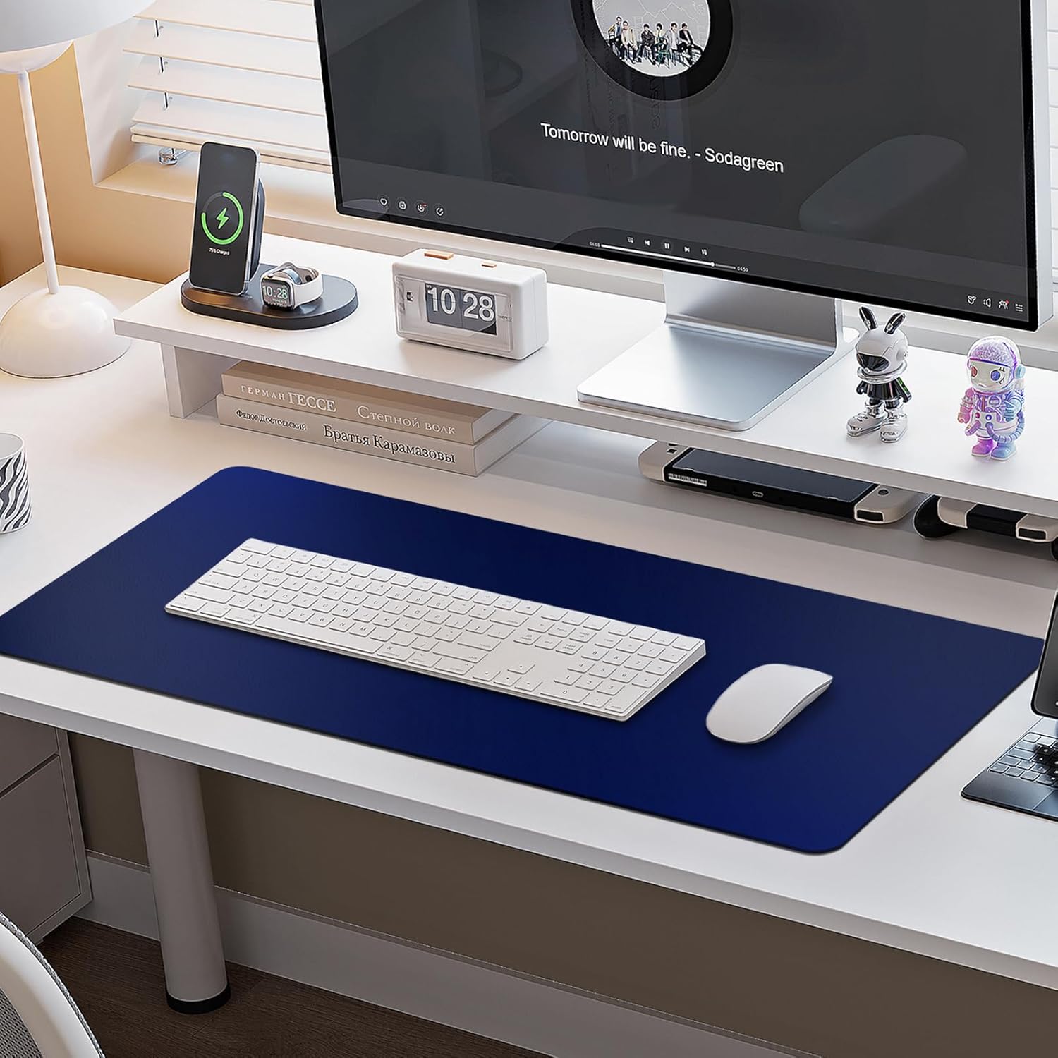 Boutilon Leather Desk Pad Protector,Non-Slip Mouse Pad,Laptop Desk Pad,Office Mouse Mat,Waterproof Leather Desk Blotter,Desk Writing Pad for Office and Home (L-Navy,35"x 17")
