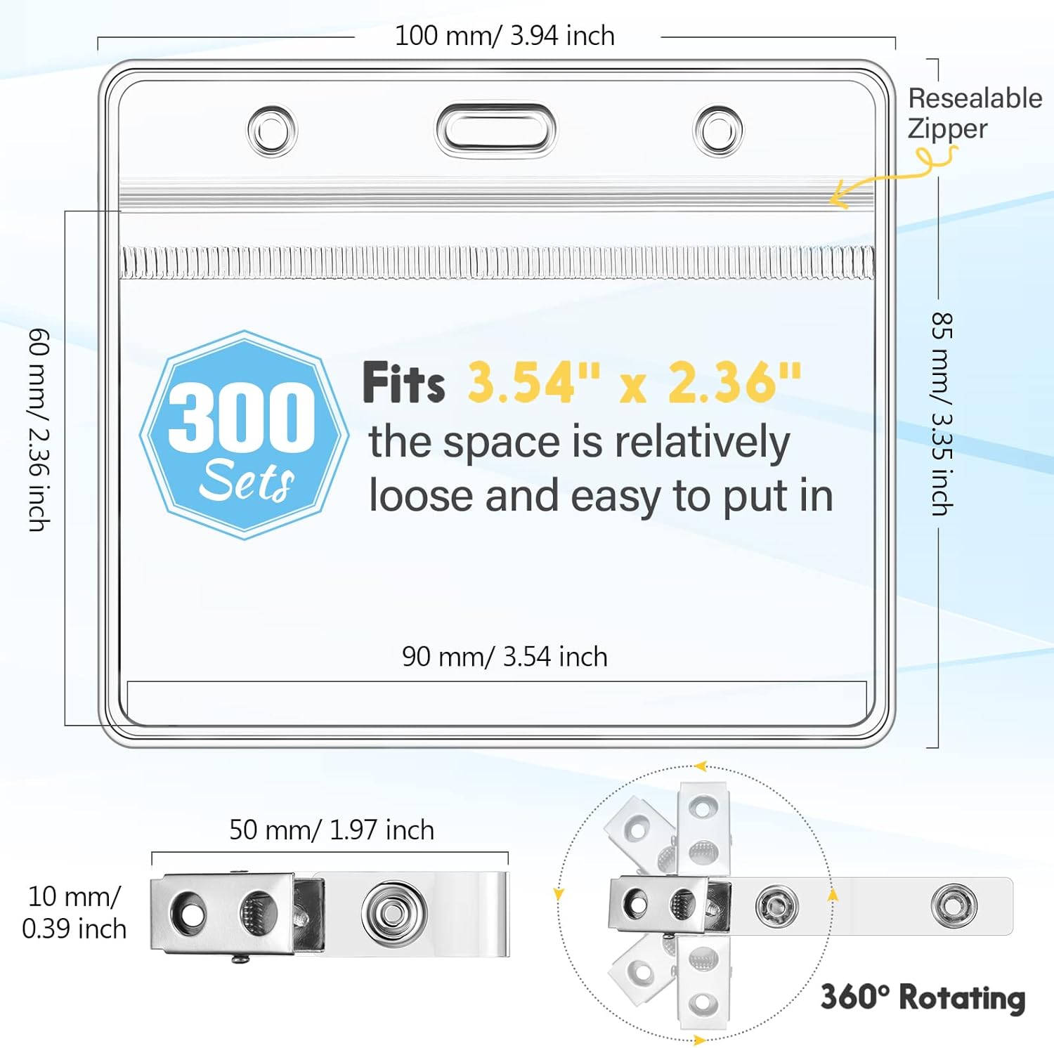 300 Sets Clip on Name Tag Clear Name Badge with Clip Waterproof PVC ID Badge Holder Transparent Name Tag Holder with Resealable Zipper Seal and Metal Badge for Teacher Worker
