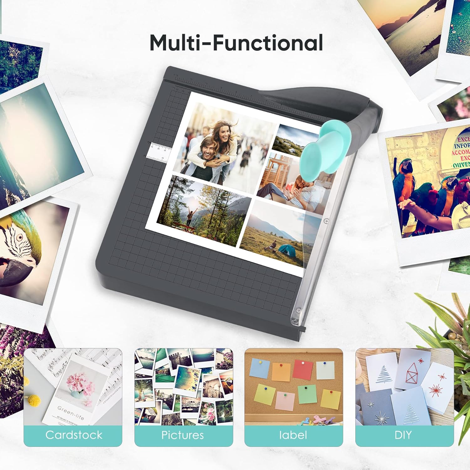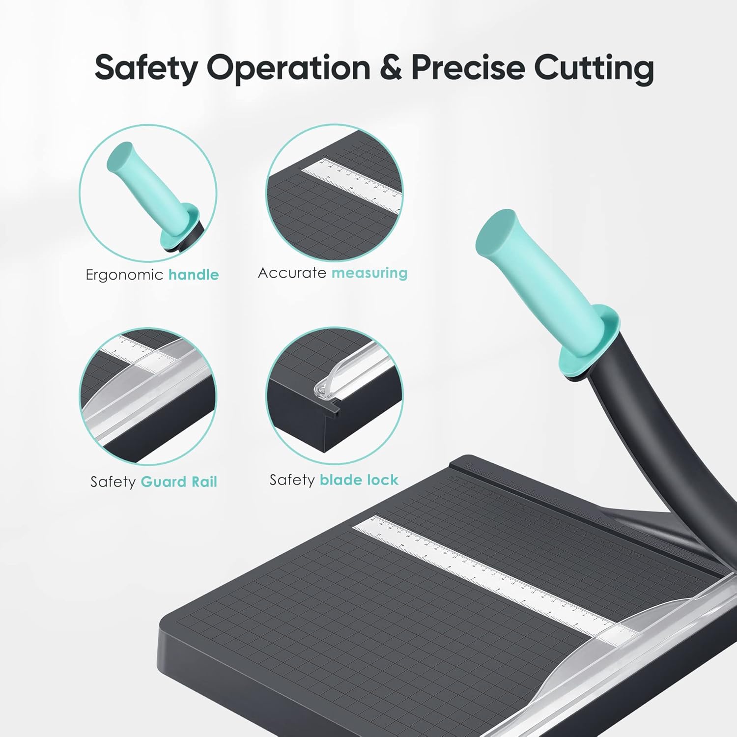 - 【Multi-Functional】 This paper cutting is nice tool for cutting typical 8.5 x 11-inch printer paper, sticker sheets, or heavy-weighted cardstock, pictures, label, cards in crafting, DIY, scrapbooking crafts, wedding invitation cards and greeting cards suit for home, office, and school./paper cutter heavy duty/guillotine paper cutter/paper slicer/large paper cutter
