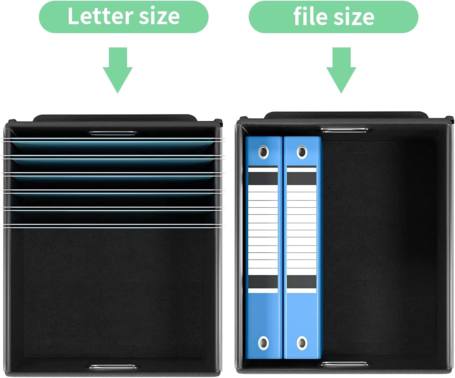 - Collapsible Multifunctional Filing Storage Organizer - The outer box with linen fabric can be dustproof, inside and the bottom support is made of thickened cardboard, which is environmentally friendly and not easily deformed. The cover with Velcro not only allows us to cover the file box easily, but provides more storage space for the file. It also acts as a small filing cabinet for tax documents, legal files and other documents storage. When we are not using it, we can fold it up to save space.