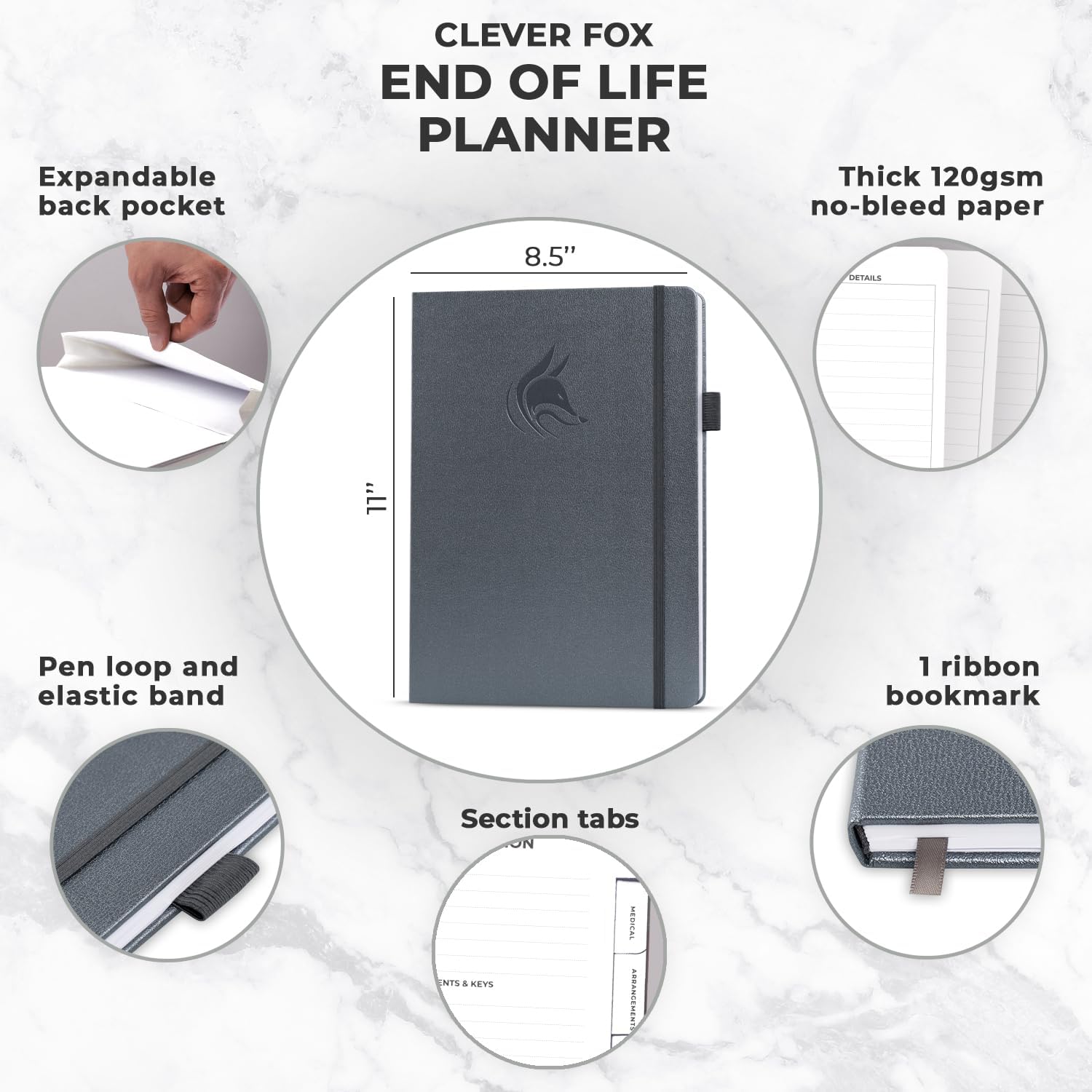 Clever Fox End of Life Planner – Final Arrangements Organizer for Beneficiary, Will Preparation, Last Wishes & Funeral Planning, A4 (Silver Black)