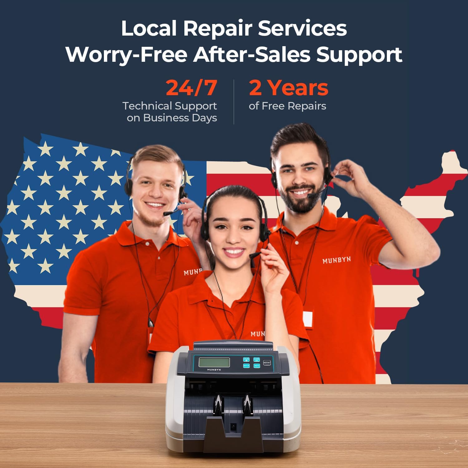 - [100% Satisfaction] Committed to providing a comprehensive money-handling solution, MUNBYN has a complete product line and technical assurance. For all our products, we provide- 1. 24-hour technical support available on weekdays. 2. Local fix point. 3. Lifetime upgrade program for the new versions or currencies bills.