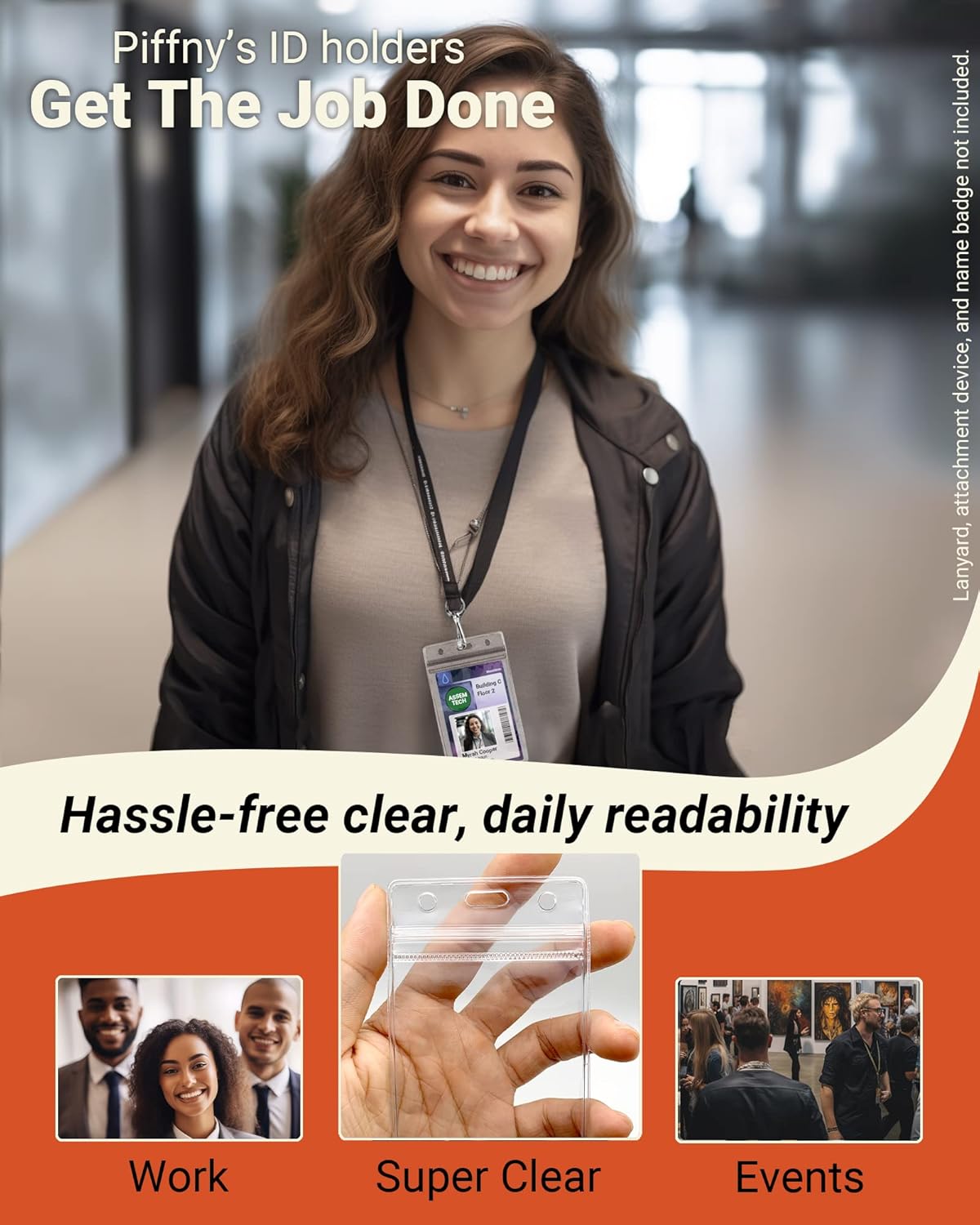 - ✔ ECO & Safe: The name badge holder is made of premium PVC material, RoSH certified. No recycling plastic scrap, non-toxic, odorless and safe guaranteed. That makes the lanyard id holder high transparency and crystal-clear. Stay as new after long term use.