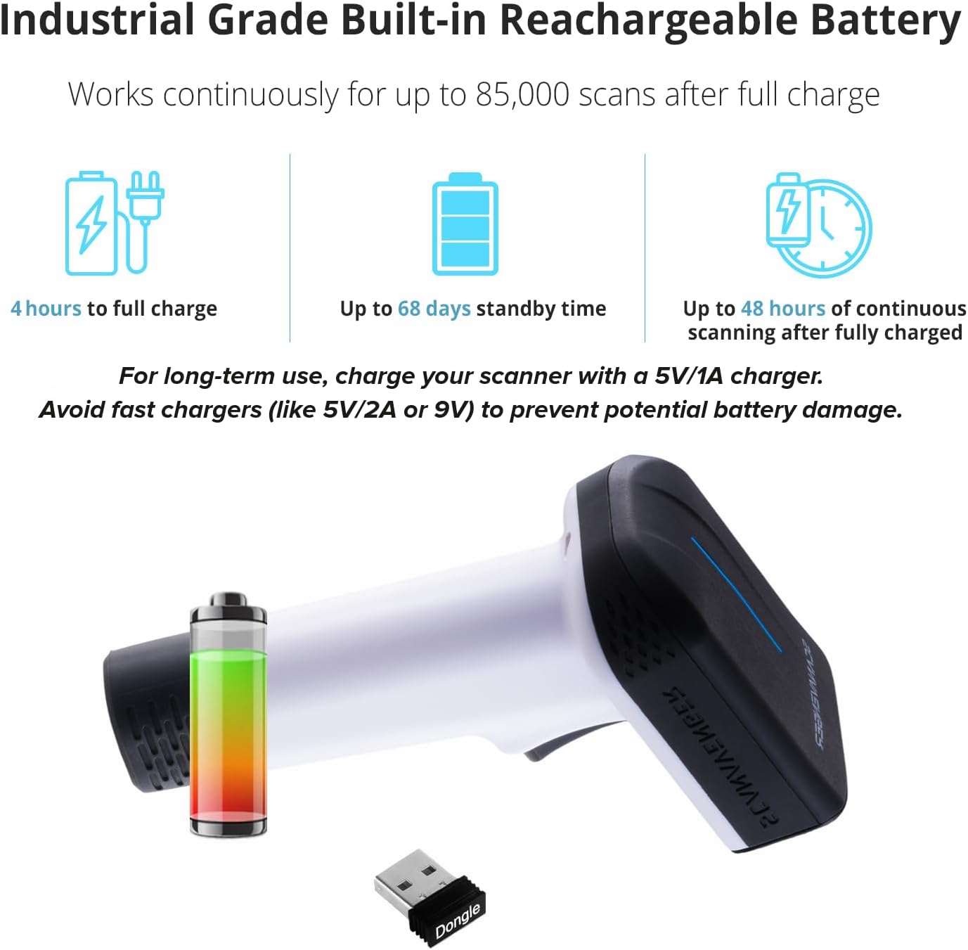 ScanAvenger Wireless Portable 1D&2D with Stand Bluetooth Barcode Scanner: Hand Scanner 3-in-1, Cordless, Rechargeable Scan Gun for Inventory - USB Bar Code/QR Reader (1D&2D Upgraded Next Gen Stand)