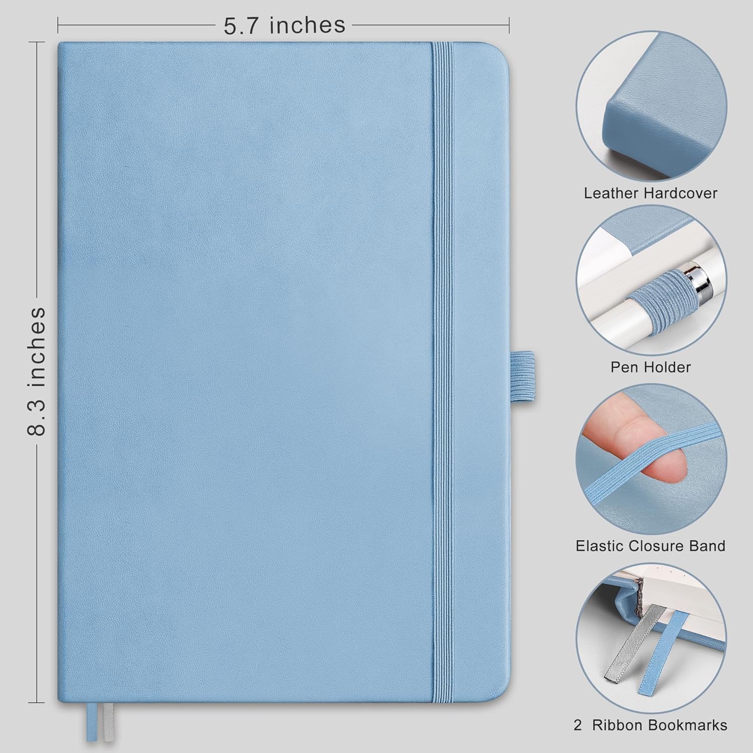 RETTACY Lined Journal Notebook, 192 Numbered Pages, A5 Medium Size (5.7'' x 8.3''), for Men & Women, Journaling, Writing, Work & Office, Leather Hardcover, 100 GSM Thick Paper (Light Blue)