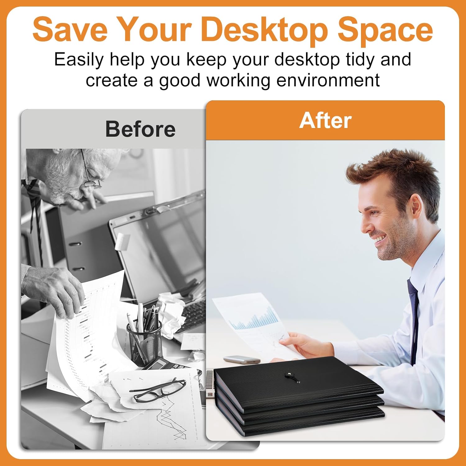 - Elastic Buckle and Business Card Pocket: file folders letter size has elastic buckle and business card pocket, making it easier for users to open and close; Expanding file folder organizer makes your work more relaxed and pleasant, perfect for people to store their loose paperwork; We also added a business card pocket to help you distinguish between different expandable file folder organizers, you can write your own name or the name of the file inside