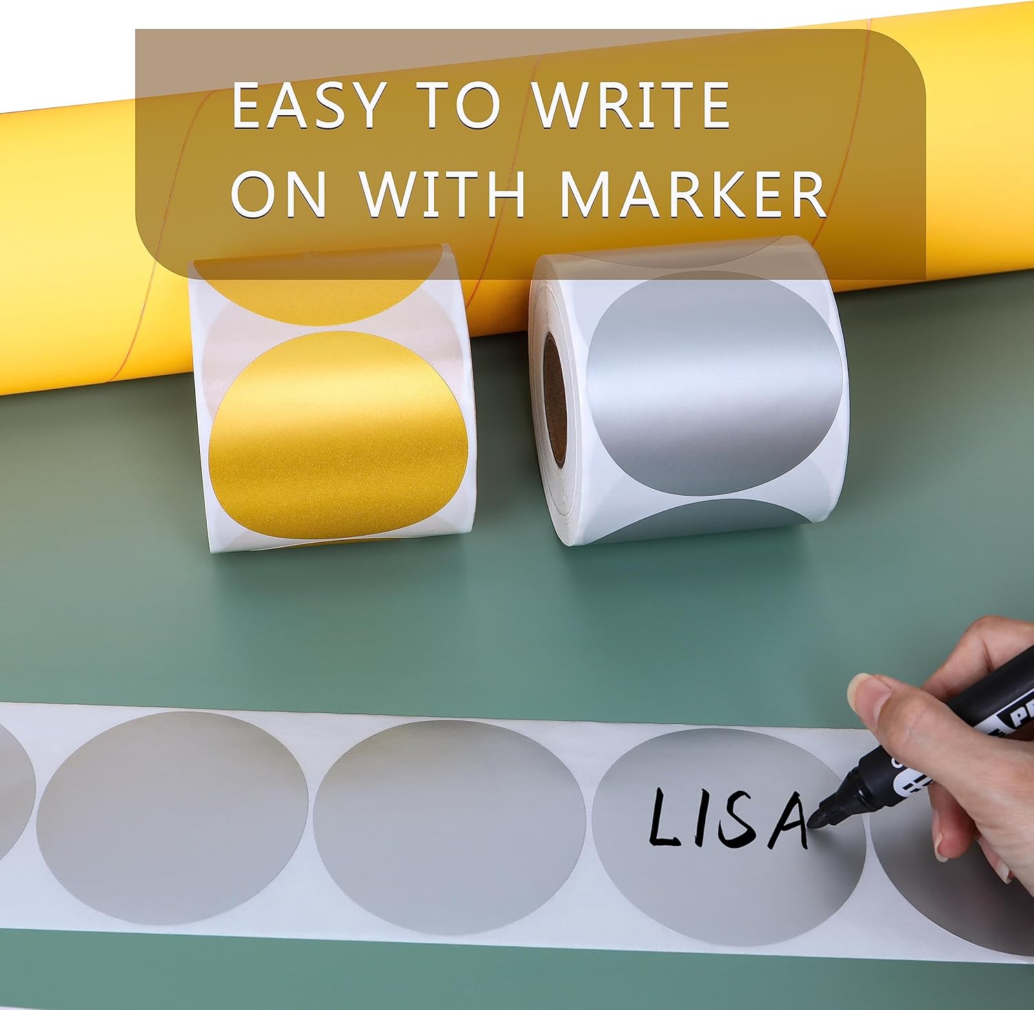 - 500pcs coding adhesive labels on a roll. 3” diameter, Silver Color-Code Dot Stickers.
