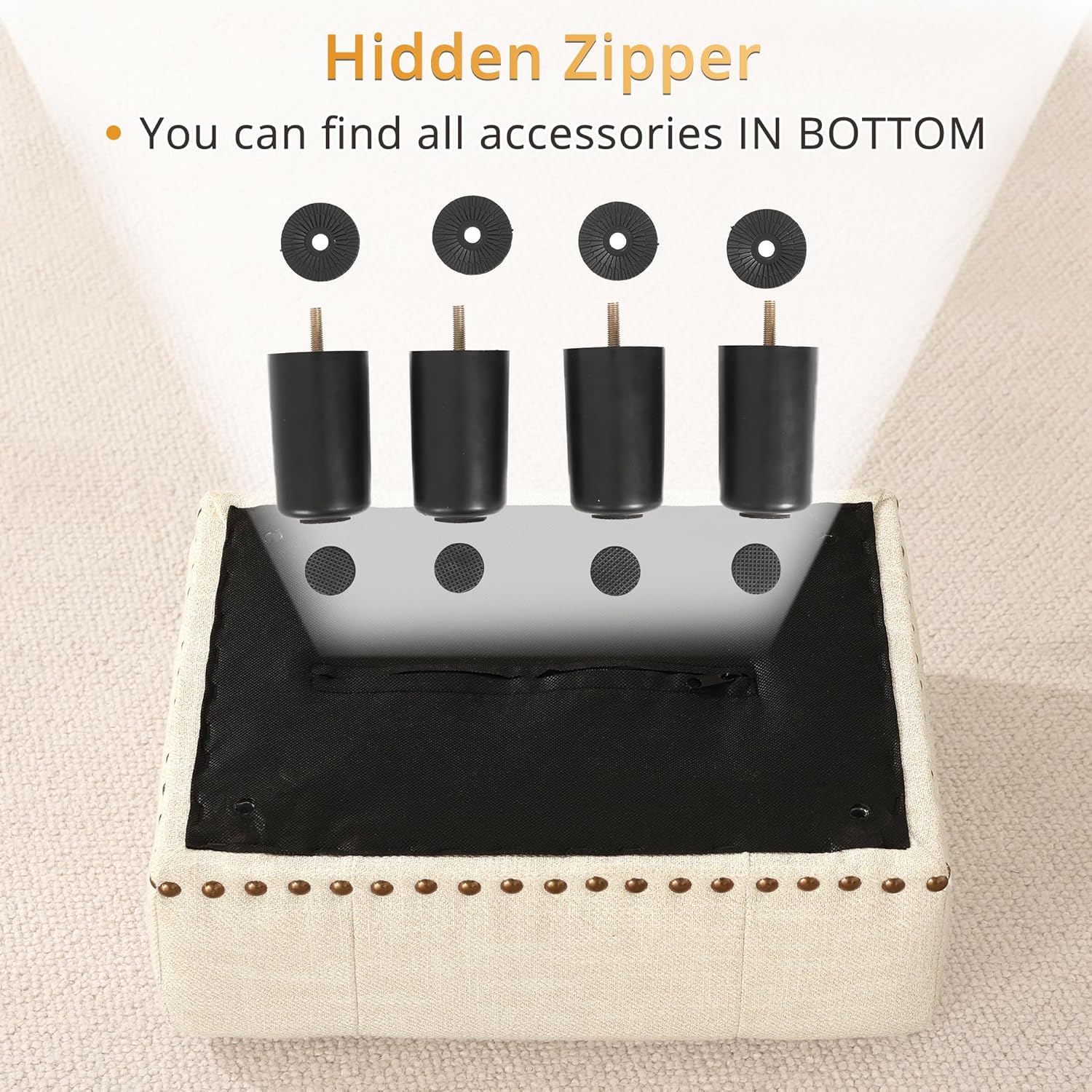 - Anti-Slip: To prevent slip and scratch in daily use, our footrest ottoman provides extra felt pads, you can take out pads from the hidden zipper area and attach them to the bottom of legs