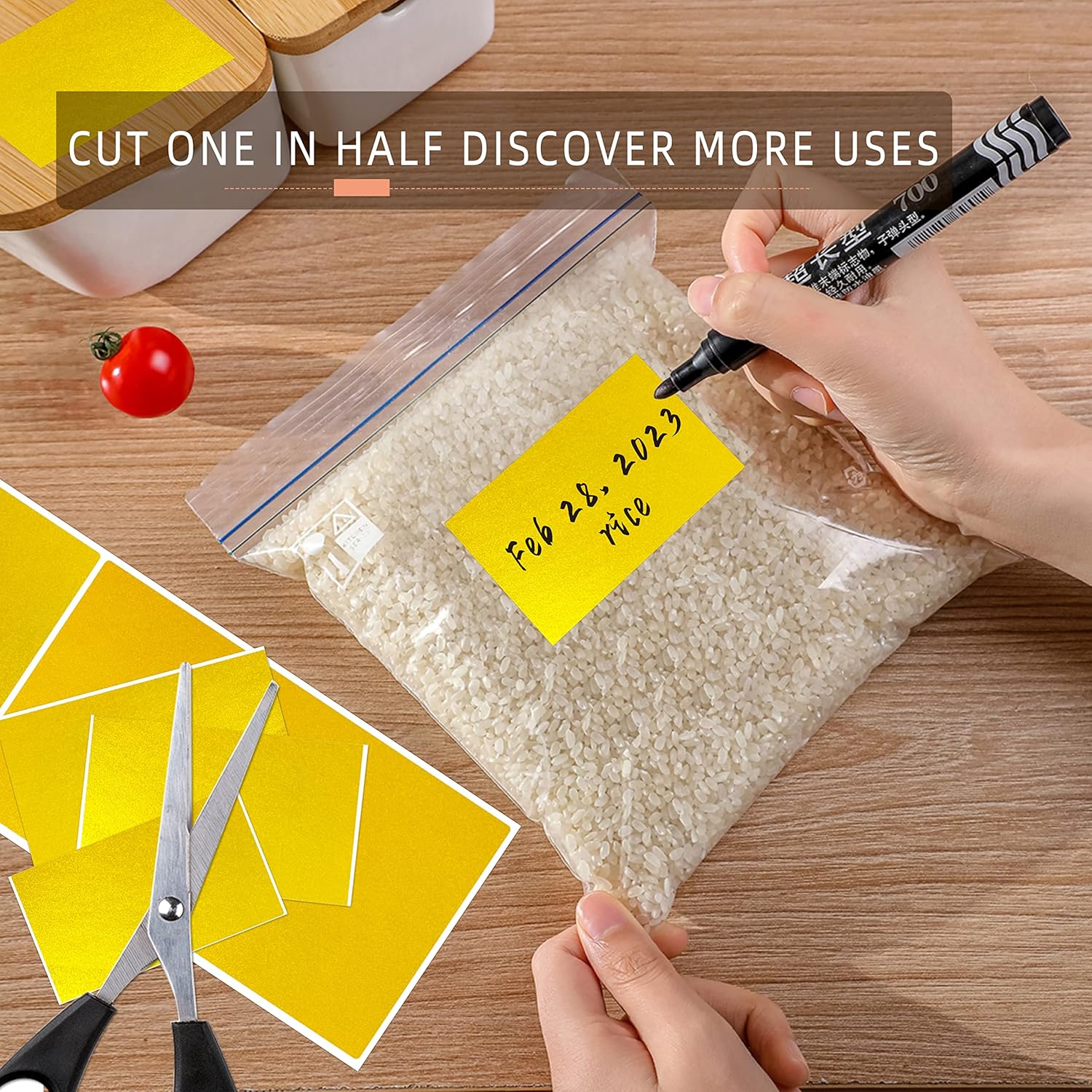 - These rectangle label stickers adhesive labels are easy to use,tear off the dotted line of the color box and pull the circle stickers from box, what you want is just write it with a felt tip marker, peel it and then stick it!