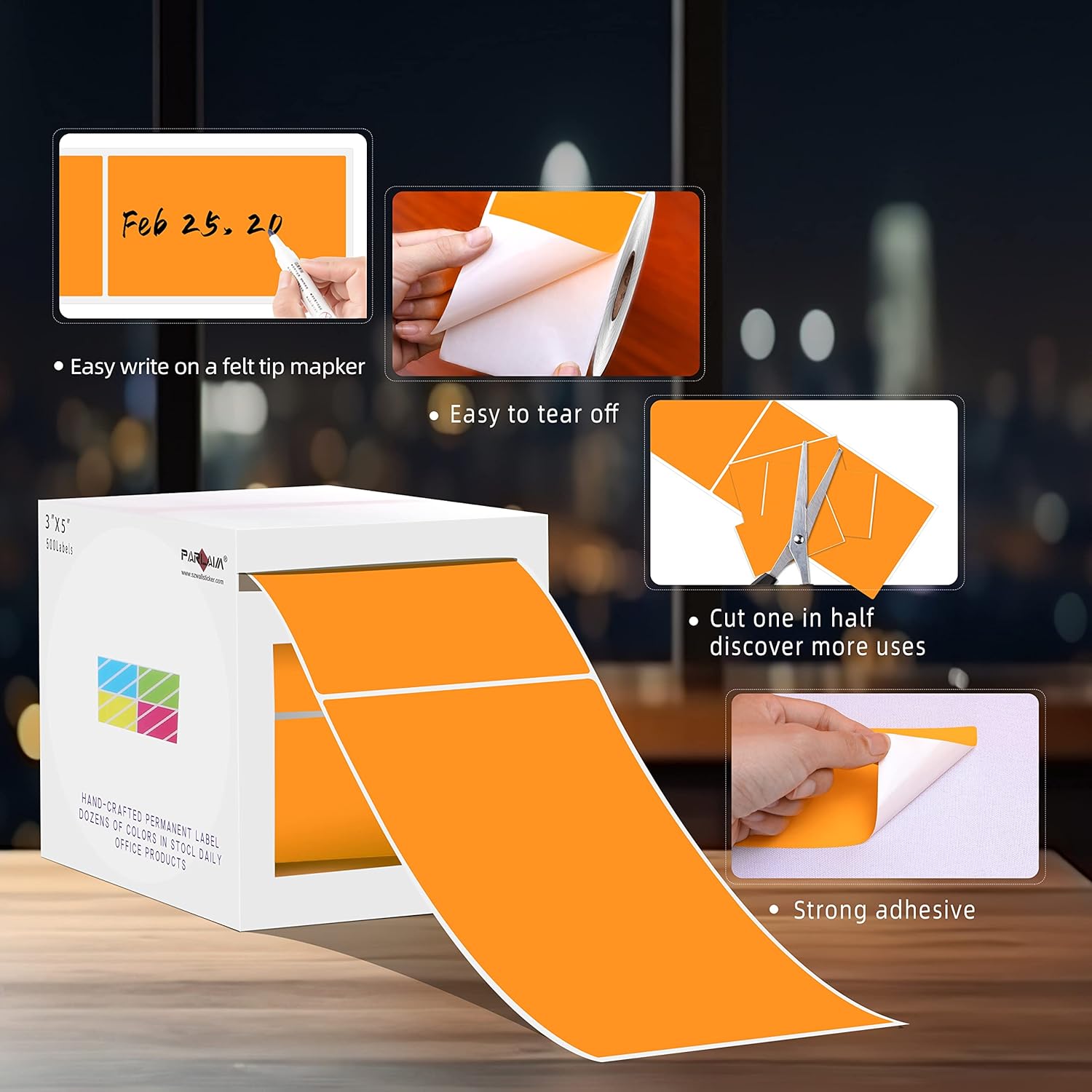 PARLAIM 5" x 3" Rectangle Color Coding Labels,500 per Inventory Labels Color Code Stickers Dispenser Box,Fluorescent Red Sticker Labels for Inventory,Family School Storage Bins Label(Orange)