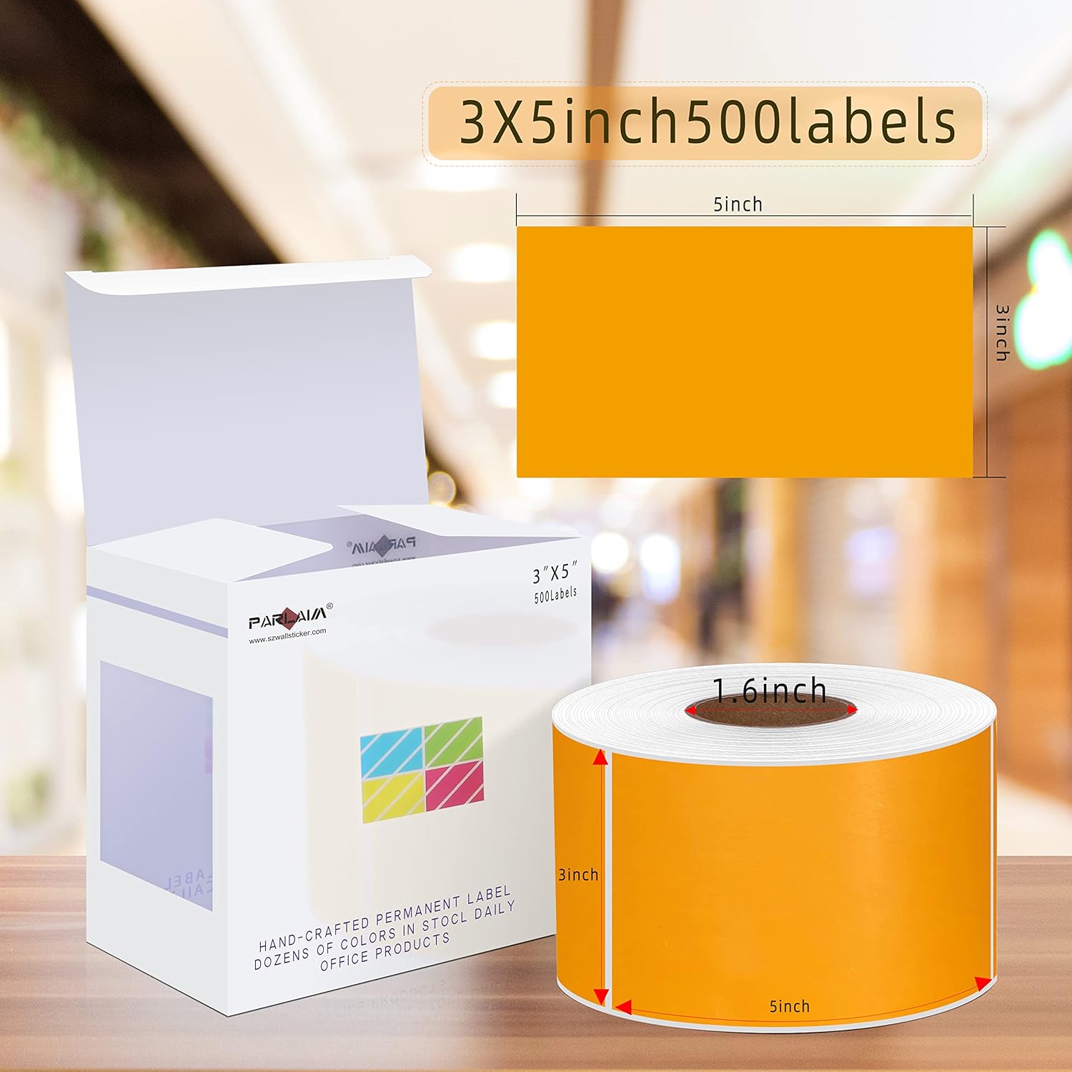 - 500pcs coding adhesive labels on a roll. 3”x 5" diameter, orange Color-Code Rectangle Stickers.