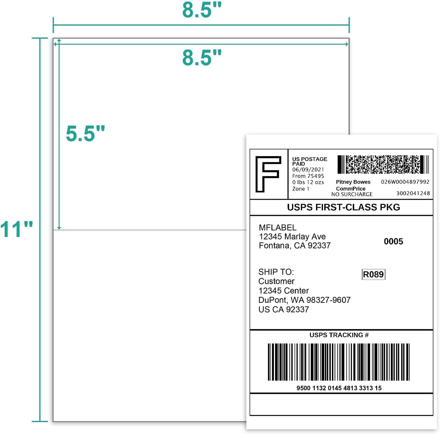 MFLABEL Half Sheet Label Laser/Ink Jet Shipping Label 8.5 x 11 Inches Packaging Labels, Address Labels for Laser & Inkjet Printers, 800 Count(400 Sheets)