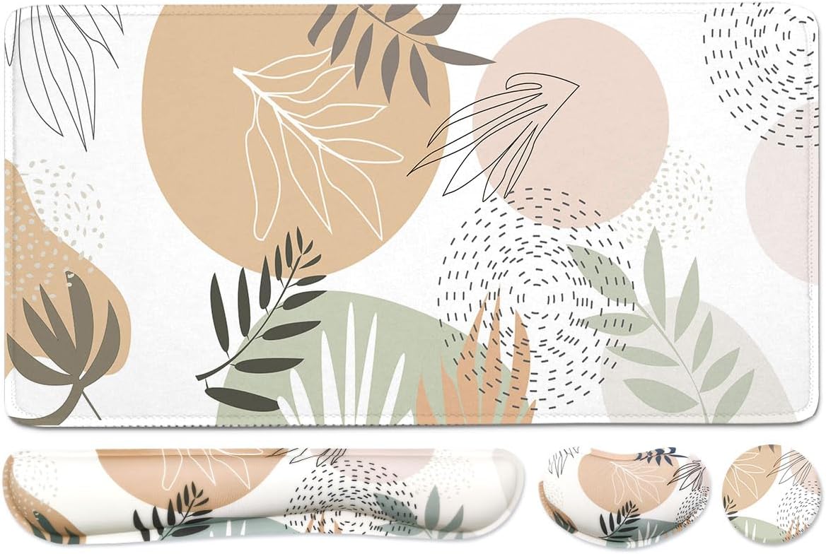 - 【Large and Extended Size】: large desk pad:35.4×15.75 inch, keyboard wrist rest measures 17.32" x 3.15" x 0.98" , Mouse wrist rest measures 5.4" x 3.15" x 0.98". Extended desk pad which is large enough to fit a full-sized keyboard and mouse, providing plenty of space for gaming or office work, and keeping a clean, uncluttered desk.