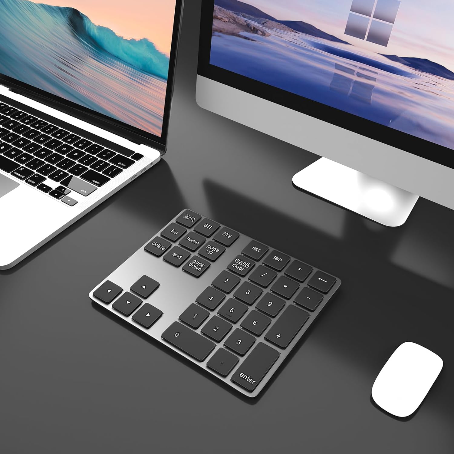 Foloda Bluetooth Number Pad for Laptop, Wireless 10 Keys USB Number Keypad, Rechargeable Numeric Keypad Numpad Extensions Data Entry Keyboard for PC iMac MacBook Notebook