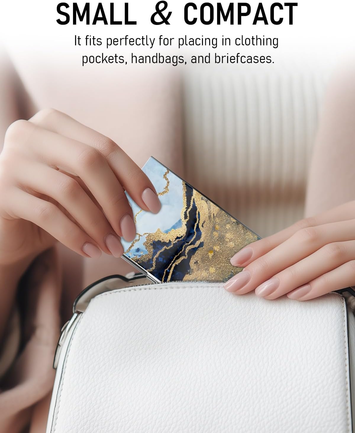 Business Card Metal Slim Organizer, Professional Stainless Steel Square Pocket Wallet for Office Workers, Compact and Portable for Pockets (Gold Black Marble)