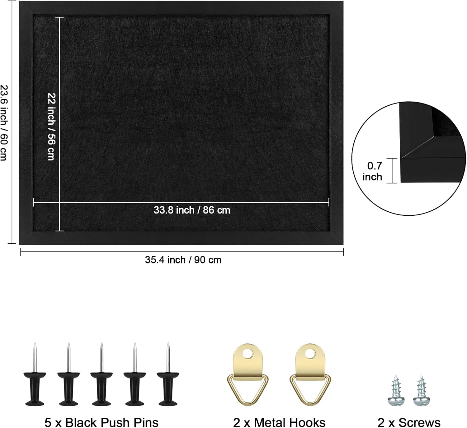 - Free Accessories: Package include 1 pack approx. 24 x 36 inch/60*90cm bulletin board. It also comes with the thing you need to install and keep your ideas on the board: 2 screws, 2 hooks, and 5 pins. Enough accessories for you to exercise your imagination