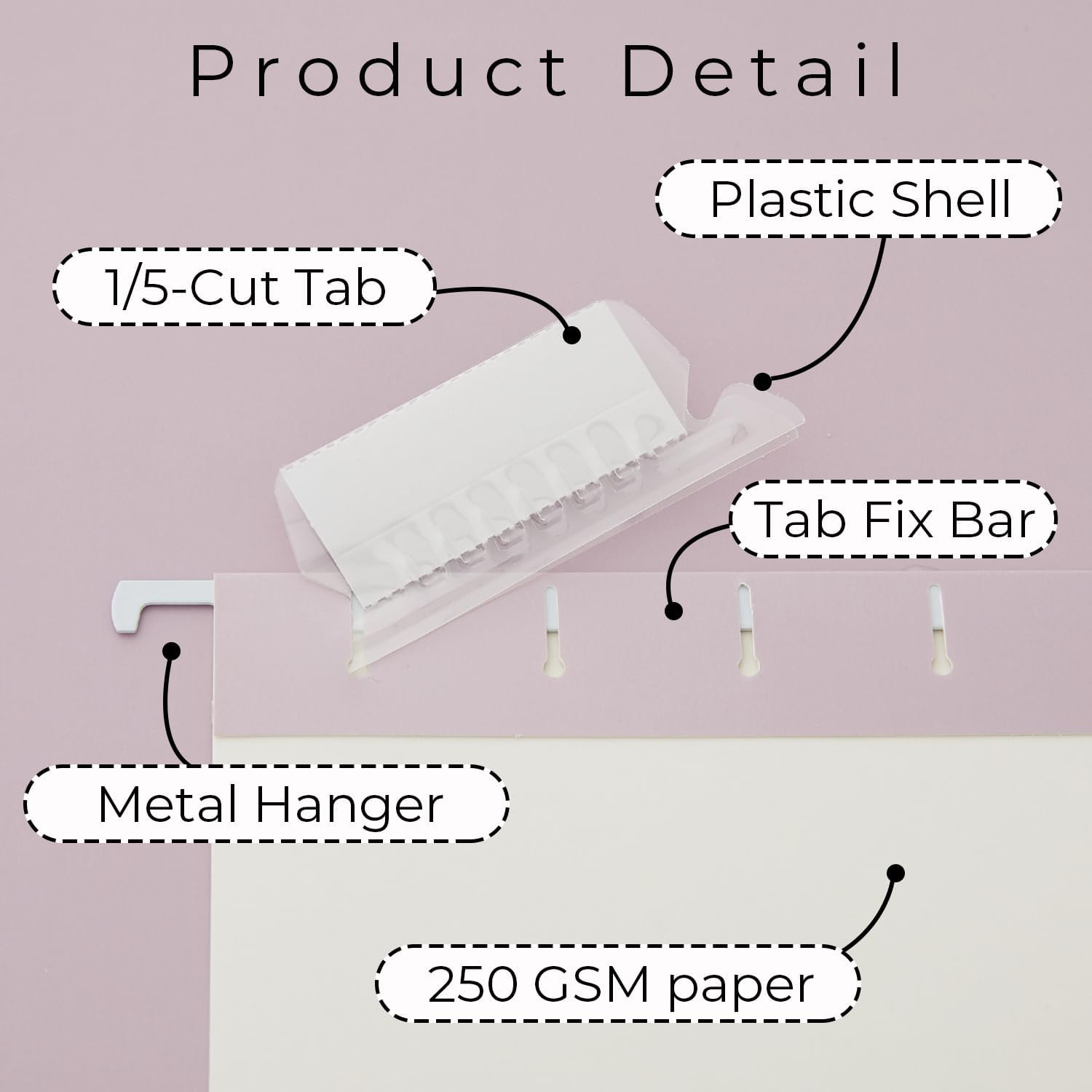 - Sorted Tabs - Each hanging folder features a 1/5-cut custom tab for hassle-free organizing and access to documents. Our pretty hanging folder can store bulky files, medical charts, or product manuals and keep files separate