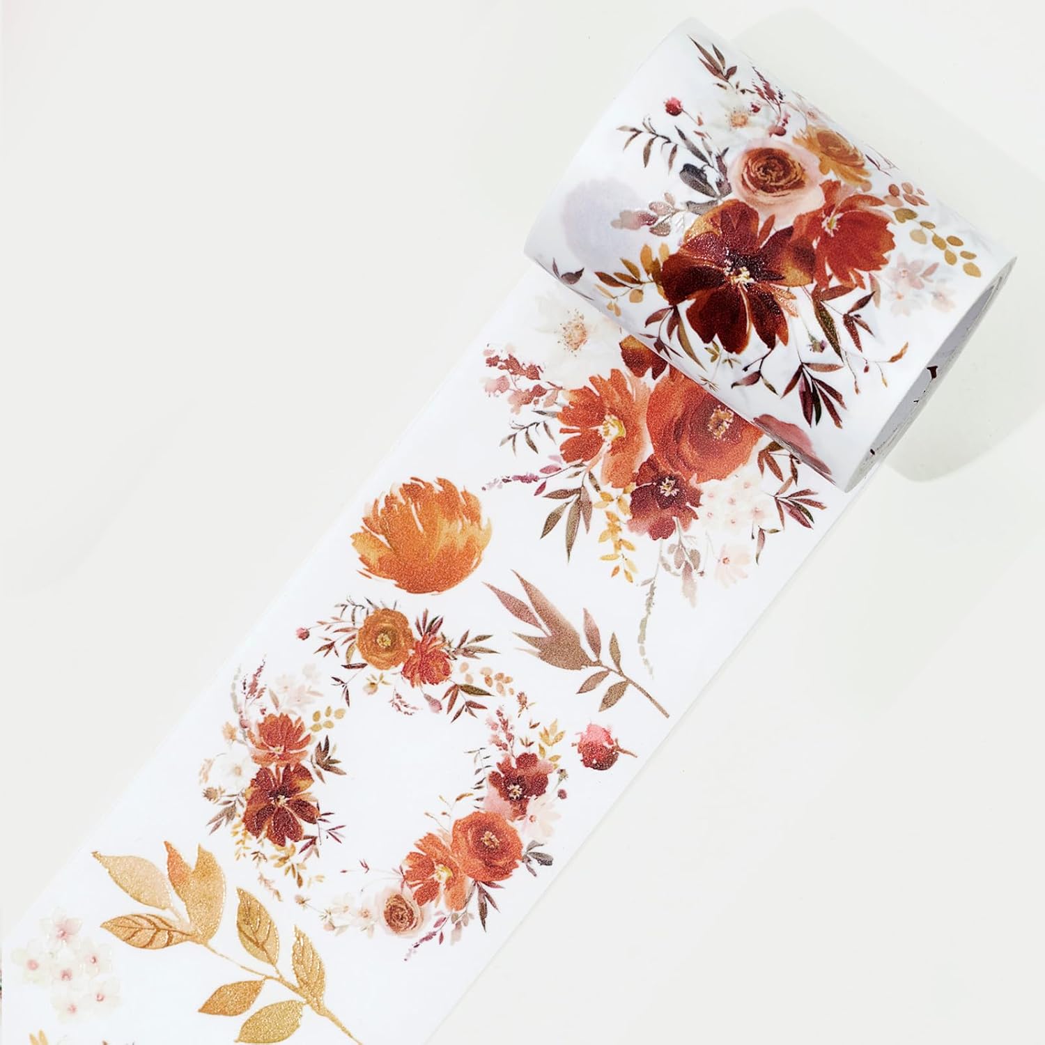WT Copper Wide Washi Tape for Journaling, Scrapbooking, and DIY Crafts, Autumn Watercolor Floral Decorative Masking Tape, 60mm Width, 5m Length (One Roll)