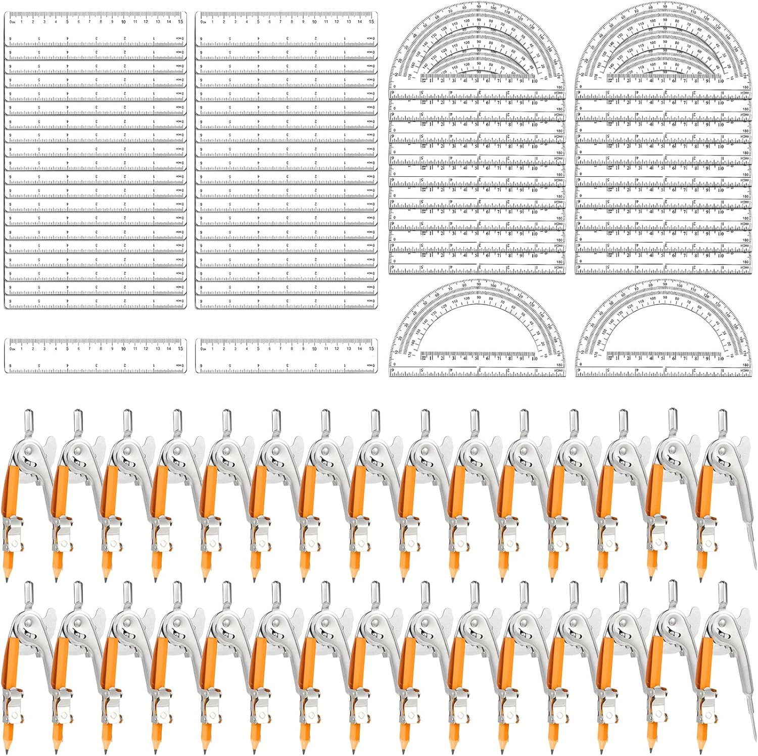 - Comprehensive Math Tool Set: this math compass combination set includes 30 pieces metal math compasses, 30 pieces pencils (which have been installed on a compass for your direct use), 30 pieces geometric protractors and 30 pieces rulers, providing ample quantities for everyday use or sharing with family and friends