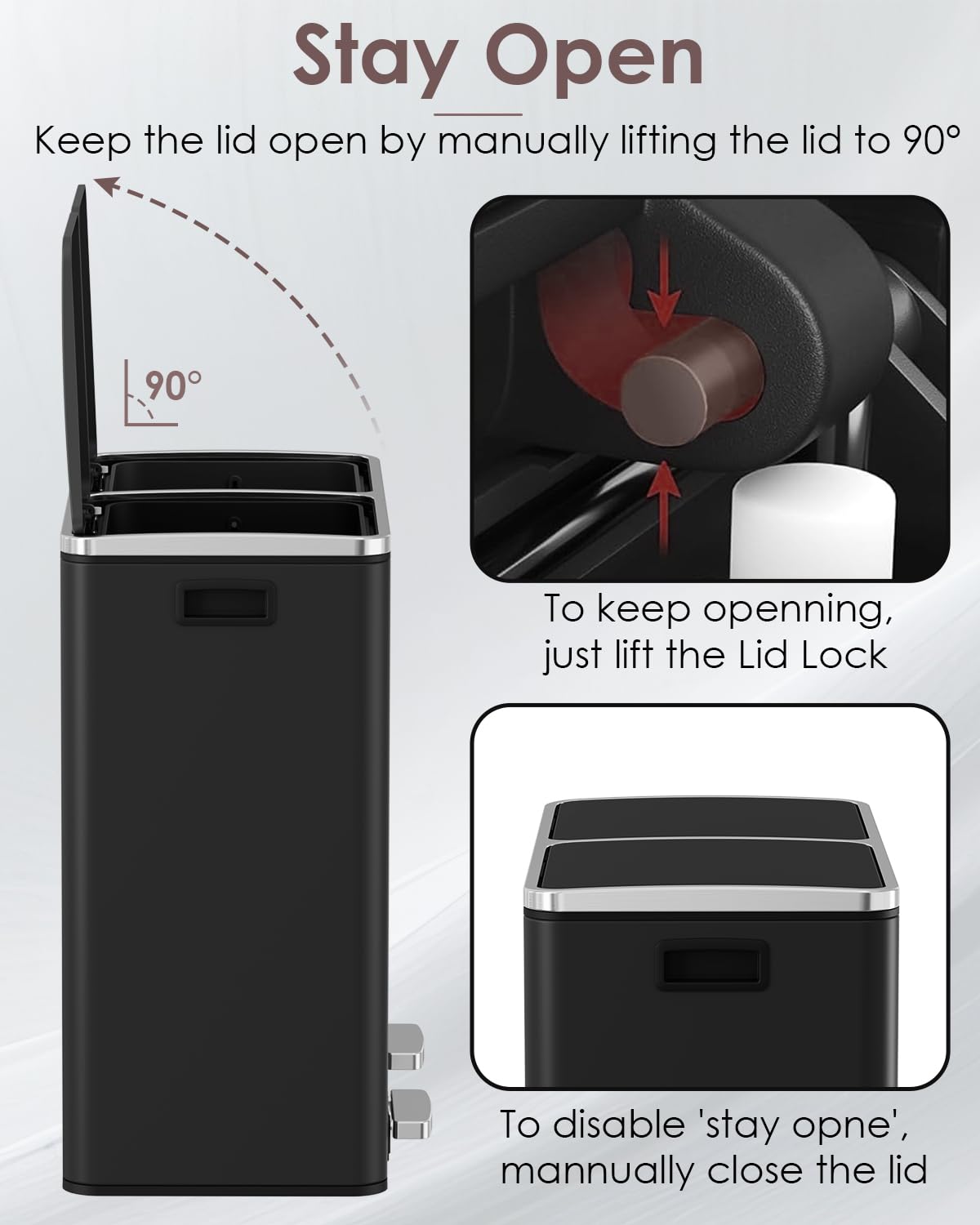 - 2*8 GALLONS COMPARTMENTS: Trash can has two independently compartments for trash and recyclables, making it easy to sort waste.