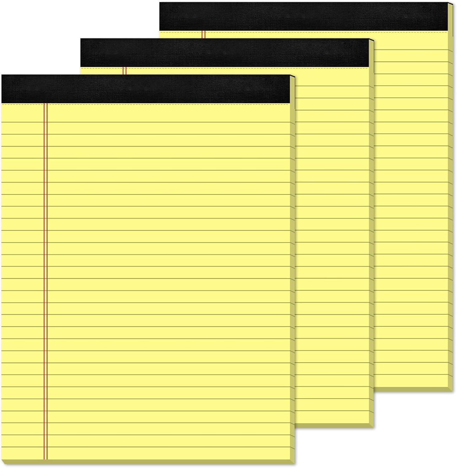 - [ENJOY WRITING AGAIN]: The yellow pads 8.5 x 11 letter size lined paper has black lines and double red margin lines on left, legal-rule format provides plenty of space for your notes. Pads of paper smooth, premium-weight paper allows your ballpoints and ink gel pens to glide across the page. Legal pads 8.5 x 11 wide ruled writing stays on the surface and resists ink bleeding and show-through. The yellow legal pads 8.5 x 11 made of 70gsm paper material, thicker than average writing pads.