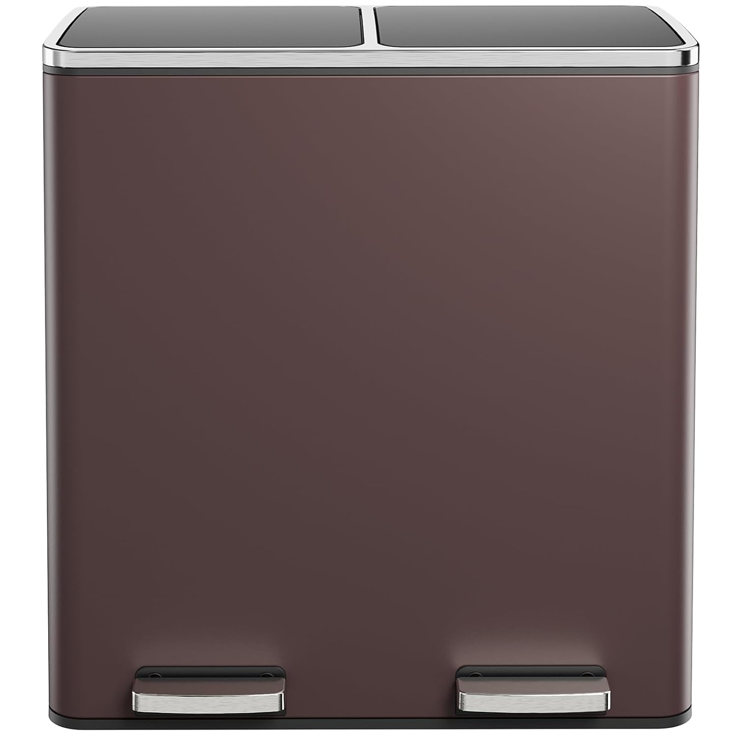 AthLike 60L(16 Gal) Dual Trash Can, Stainless Steel Kitchen Garbage Can, Double Compartment Classified Rubbish Bin, Recycle Dustbin w/Plastic Inner Buckets, Handle, Soft-Close Lid, Airtight, Brown