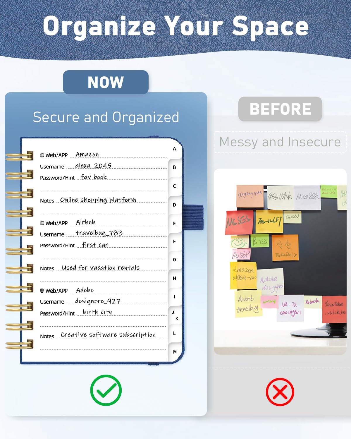 - Never Forget Passwords Again: Record 468 passwords, with space for updates; Say goodbye to password woes! Secure Pass Keeper Book keeps you covered