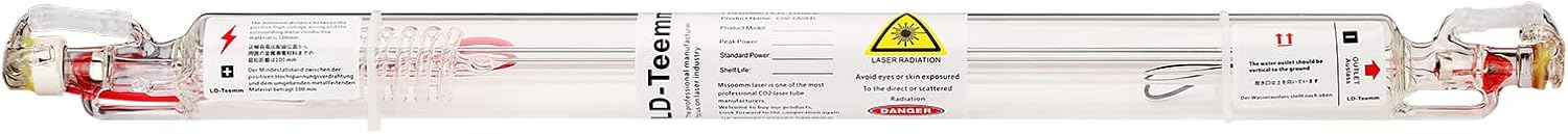 - 【Parameters and Features】: CO2 laser tube Power: 60w /watt, Outer Diameter: 50mm, Length: 1000mm, This laser tube has Wire Pre-connected and with heat shrinkable sleeves for a higher level of safety, and Add silicone fixing ring to avoid the problem of easy to crack before. Universal for AC 110V and 220V. The laser tube adopts inner discharge tube coated with nano gold catalyst, power is improved.