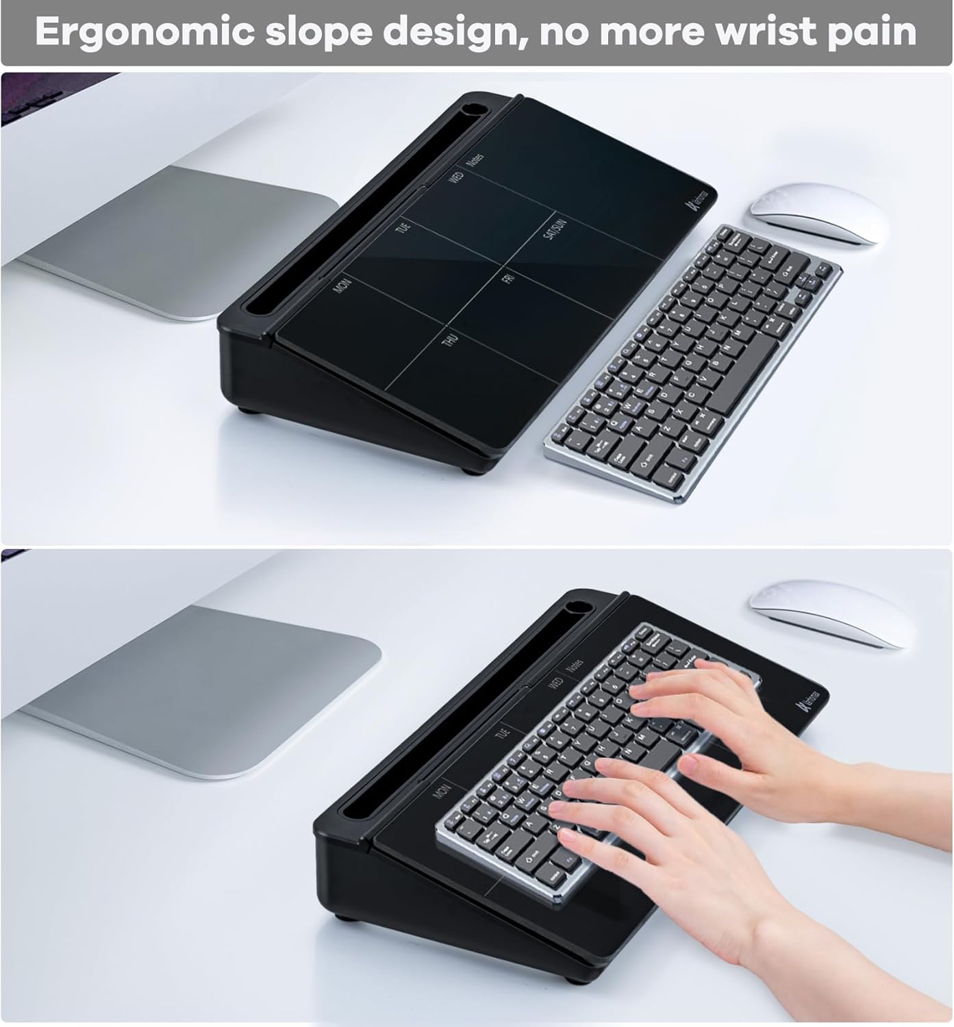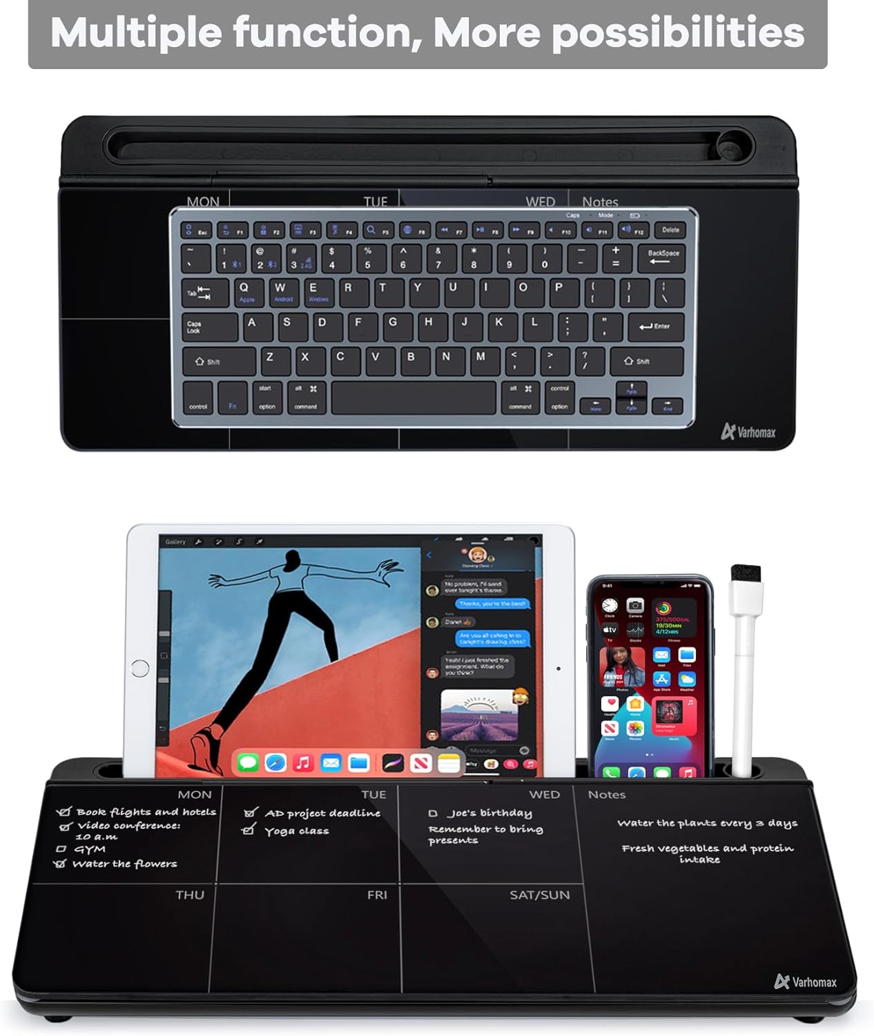 - Multi-functional Design: Sitting compactly between your monitor and keyboard, you can use it as a desk whiteboard, or phone/tablet holder, or keyboard stand. It can used for your office task organization, family schedule and workout plan