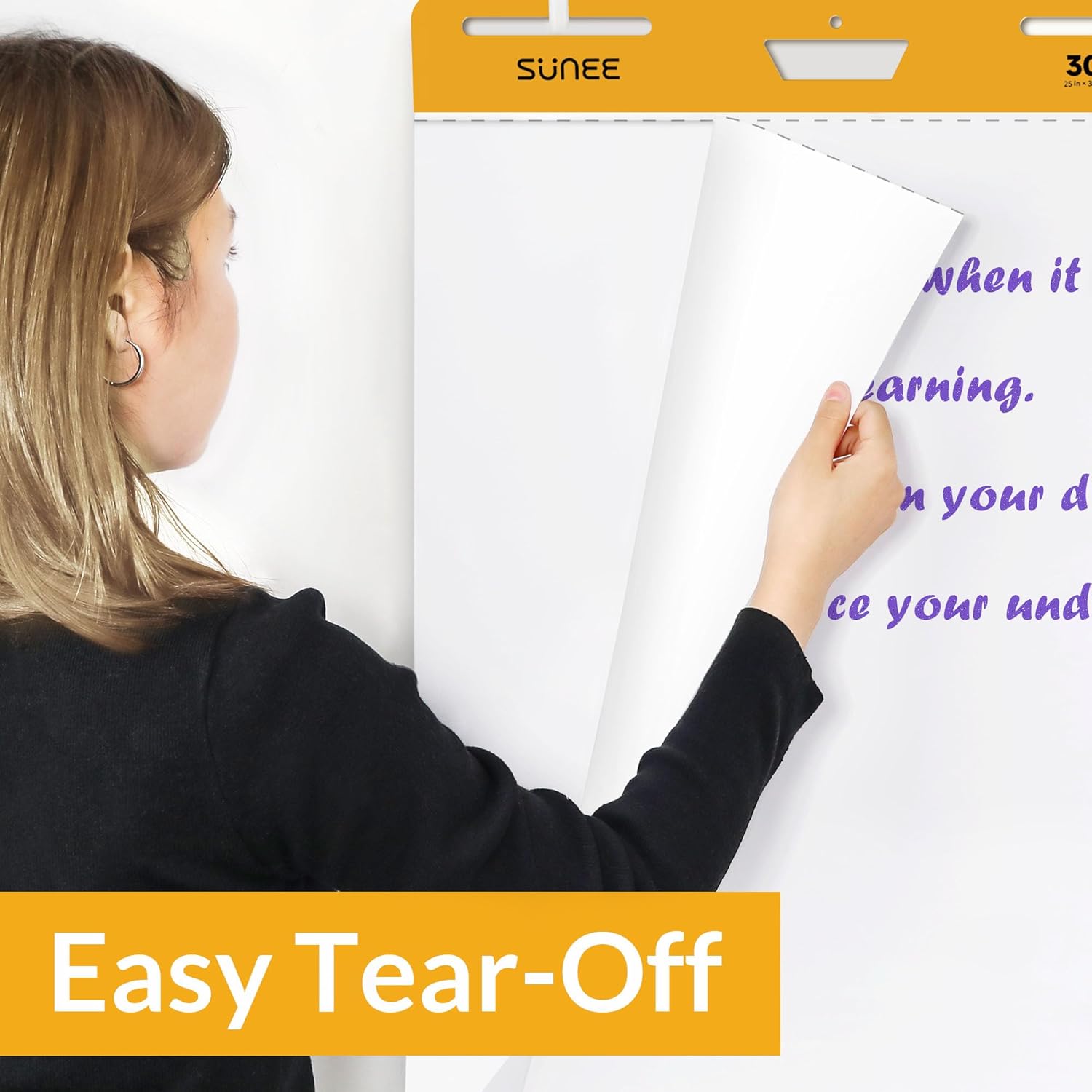 SUNEE Sticky Easel Pads, 25 x 30 Inches Chart Paper (6 Pack), Self Stick Easel Paper for White Board, Large White Premium Self Stick Flip Chart Paper, 30 Sheets/Pad, 6 Pads