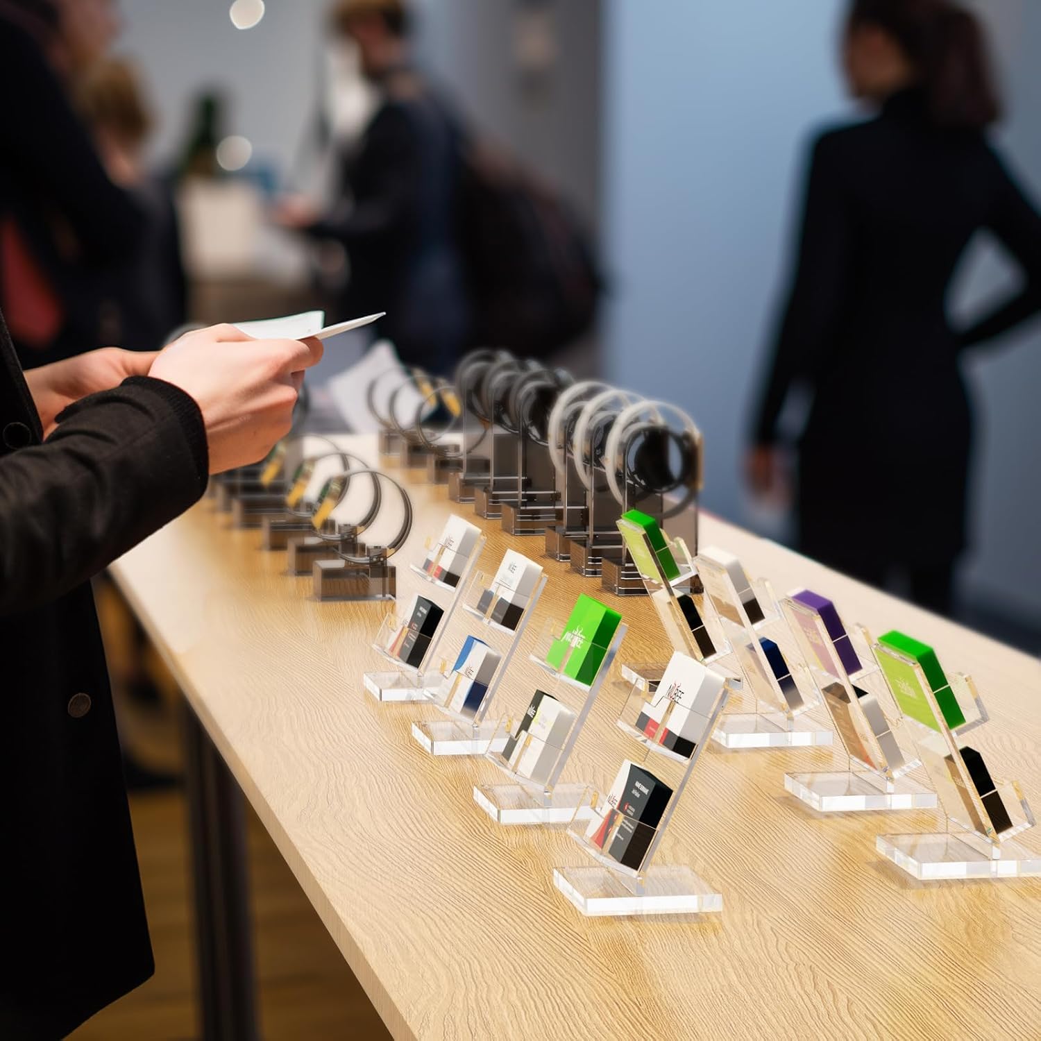 - 【Your Best Business Partner】Unlike traditional business card display, this holder features multiple card slots in a vertical orientation, saving space and allowing for clear and unobstructed visibility of your cards. It's your best business partner, helping you close deals and make connections.