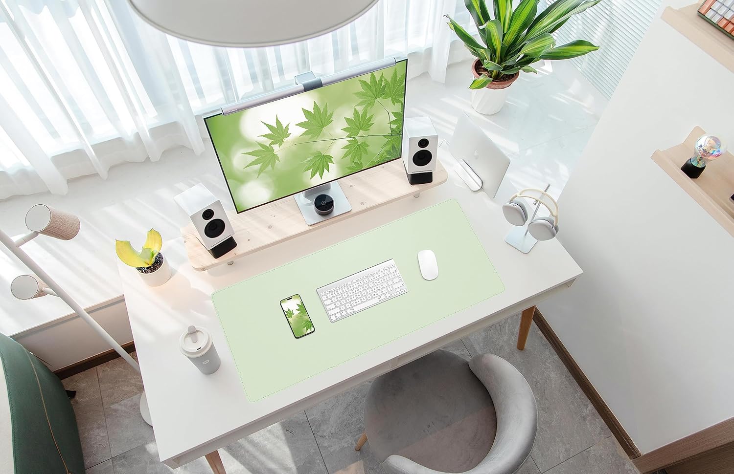 Leather Desk pad Protector, Large Desk mat with Natural Cork & PU Leather,Mouse pad,Non-Slip Office Desk Mat,Waterproof Desk Writing Pad for Office and Home (35in*17in, Light Green)
