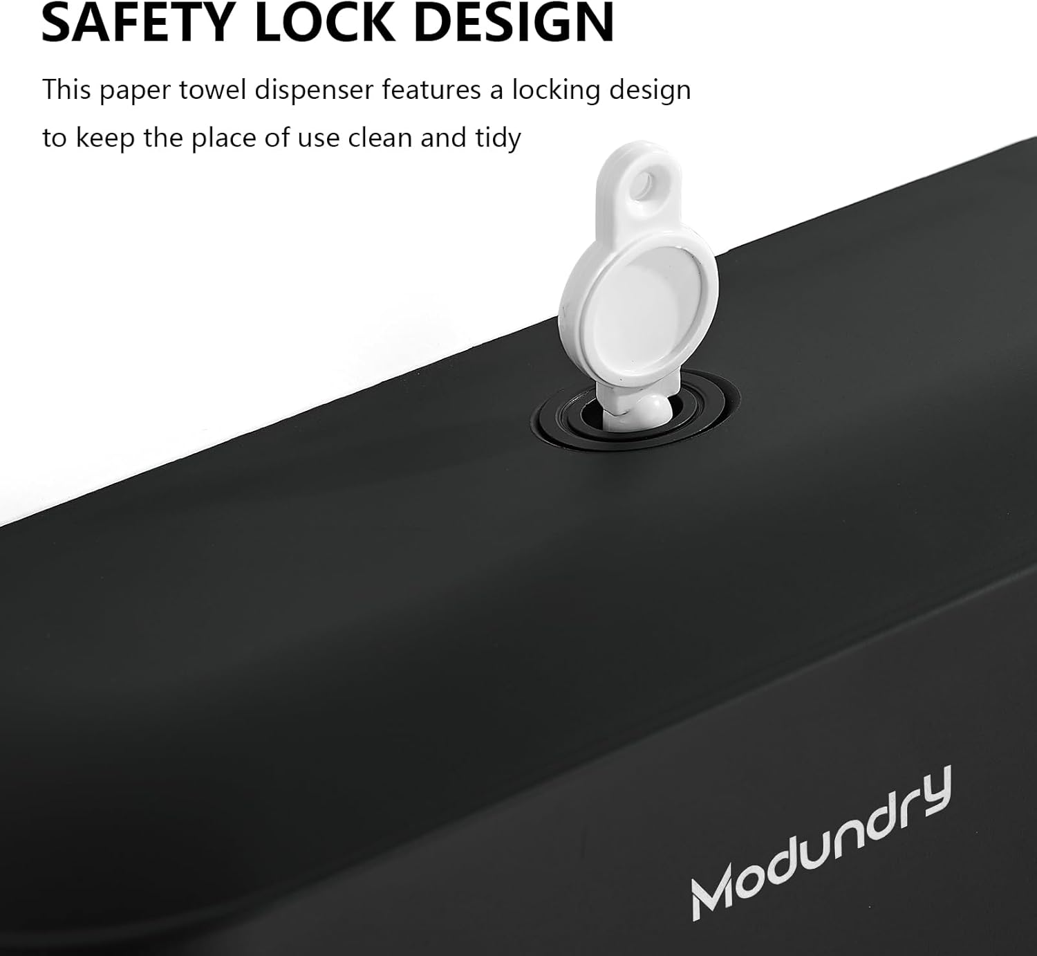 - 【Durable ABS Material】- This modern design paper towel dispensers is made of high impact ABS plastic,which is durable for long-term use;The smooth surface is very easy to clean and provides maximum protection from dust and water. Perfect for the busy restroom.